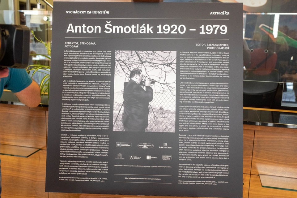 "Bola to osobnosť, ktorá sprevádzala všetky významné umelecké udalosti mesta, ale nielen to, Anton Šmotlák zaznamenával všetky premeny mesta, ktoré sa diali, je to veľmi vzácne, preto koncept vychádzal z toho, aby sme ukázali na miestach, ktoré autor zobral ako zaujímavé a fotil ich, premeny mesta, aby mohli návštevníci konfrontovať rozdiel, ktorý nastal," uviedol na vernisáži Grežo.