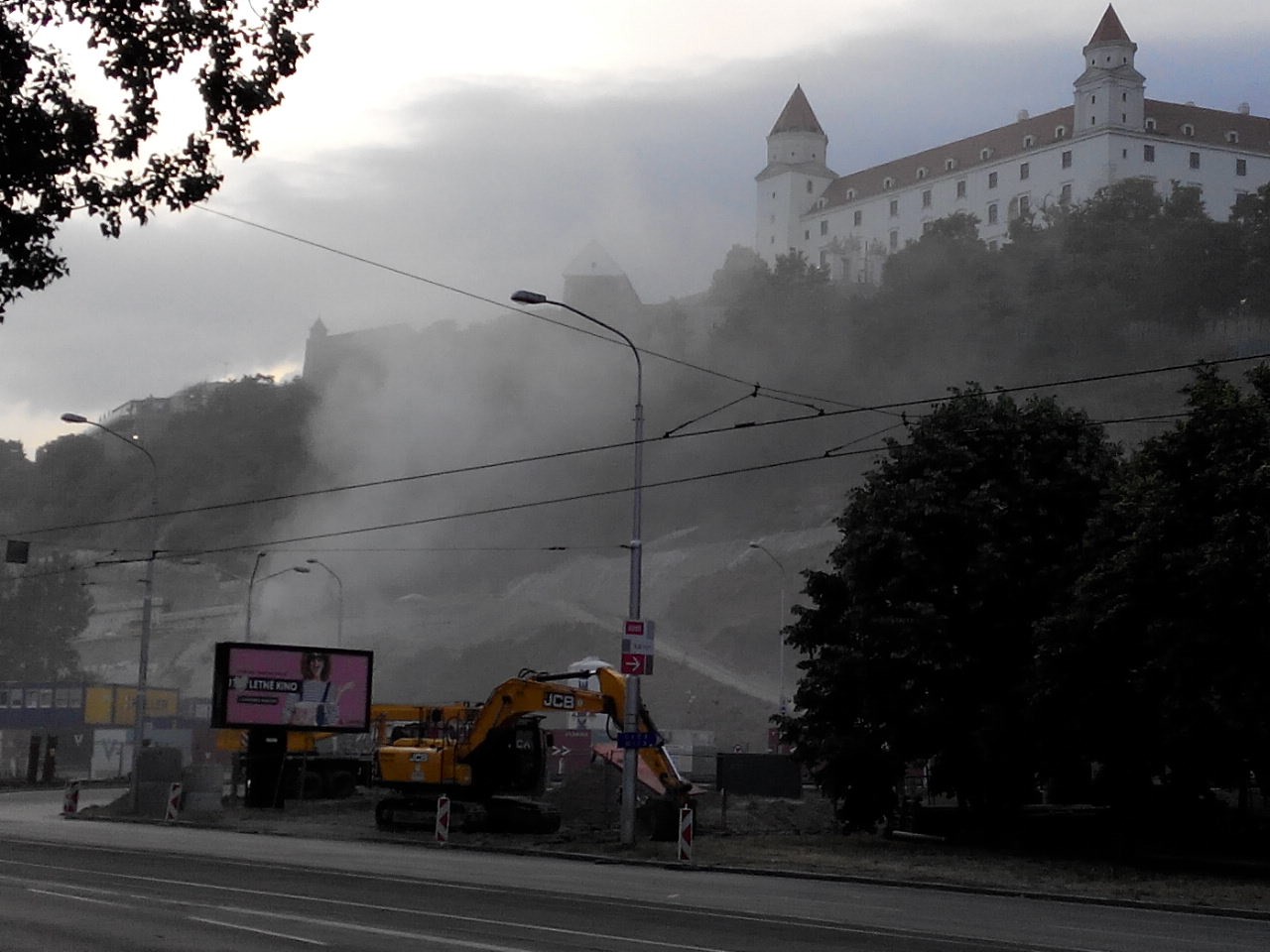 Do redakcie nám prišli fotografie od nášho čitateľa Vlada Riháka, na ktorých vidno hustý biely dym vznášajúci sa nad areálom staveniska pod Bratislavským hradom, kde sa buduje nová štvrť Vydrica. V skutočnosti však nešlo o sprievodný jav horiaceho ohňa ani prípadného požiaru, ale o obrovský oblak prachu šíriaceho sa do bezprostredného okolia...