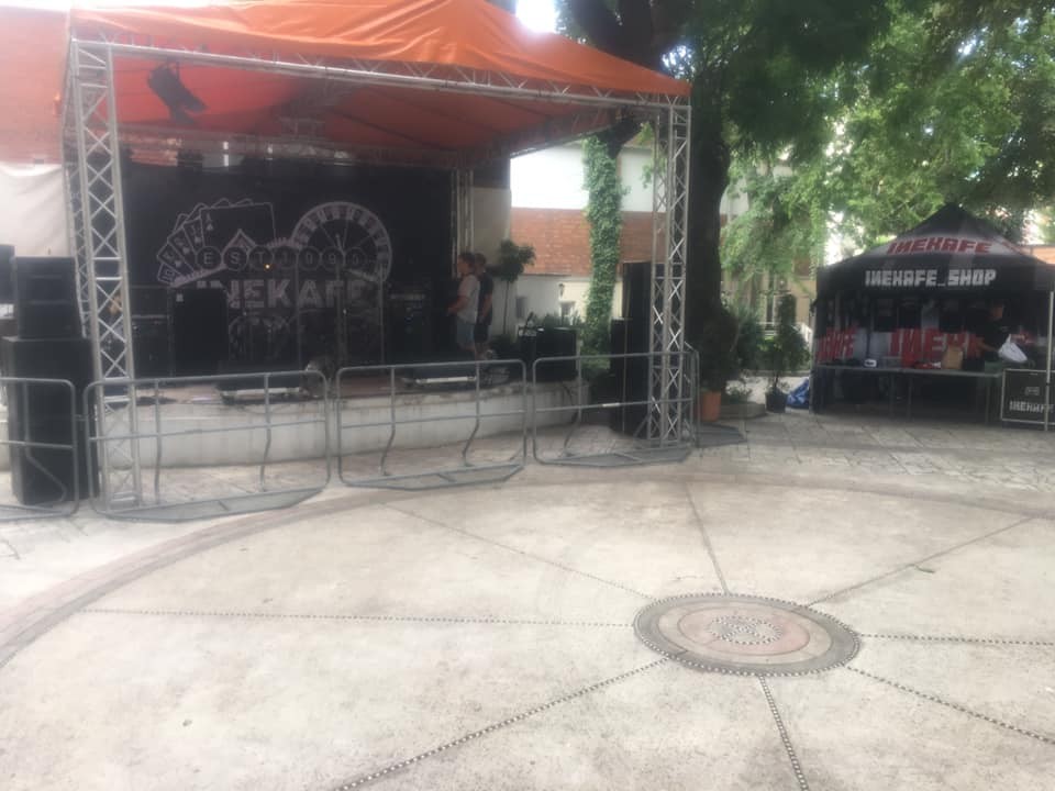 Pripravené bolo nielen pódium, ale aj stánok, kde sa predávali cédečka, tričká či iné suveníry spojené s kapelou, ktorá existuje od roku 1995, takže celkovo je na scéne už vyše 26 rokov...