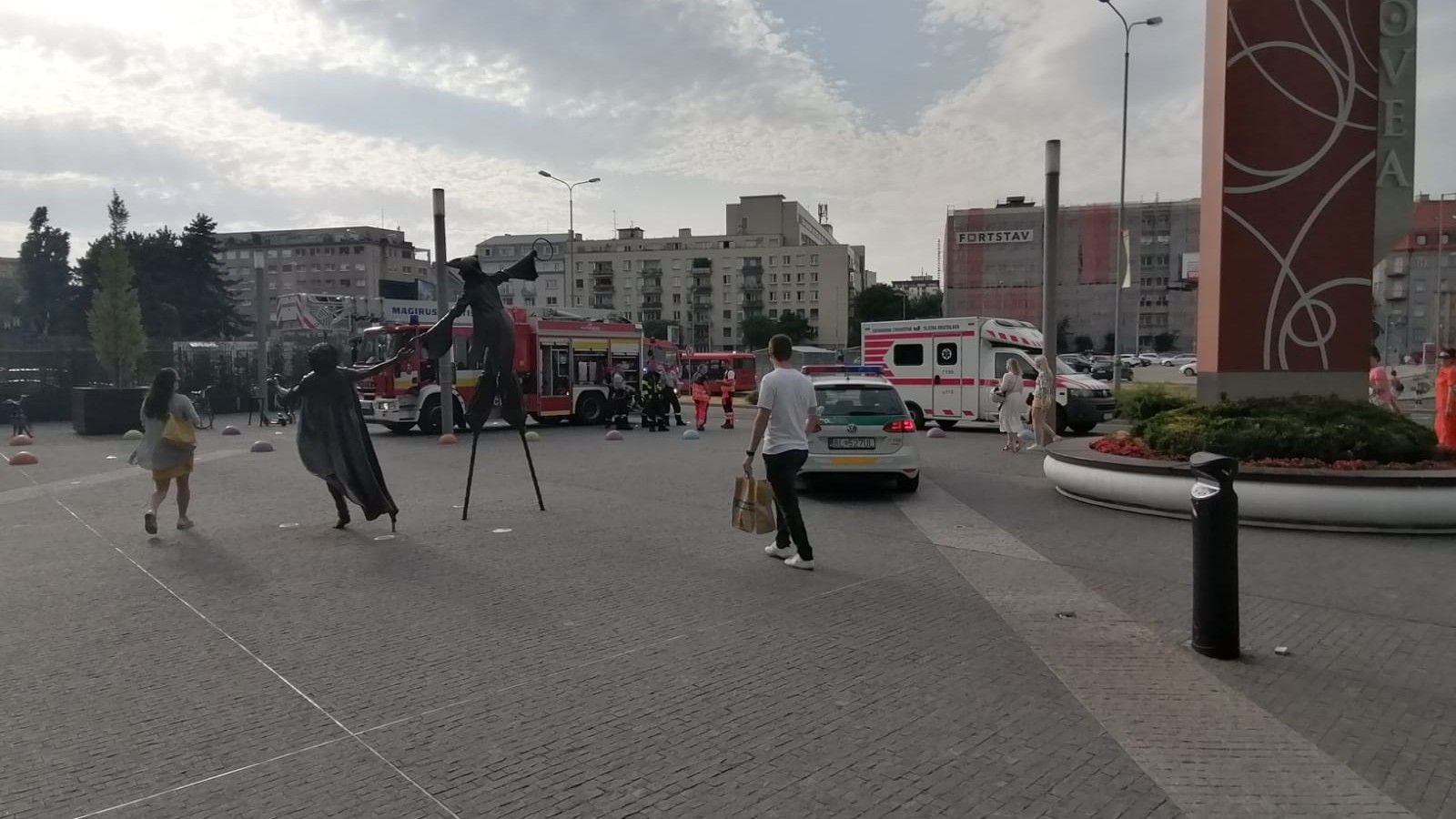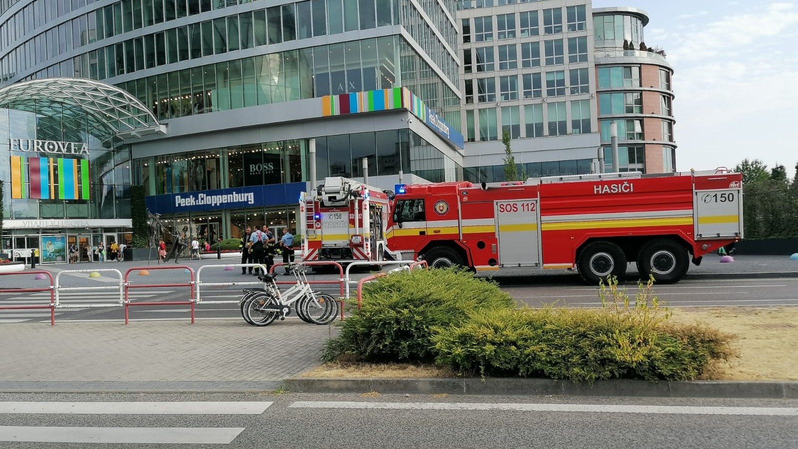 Hasiči, policajné autá, sanitka. Pred nákupným centrom Eurovea bolo vo štvrtok po 18:00 h rušno, vo vnútri totiž vypukol požiar.
