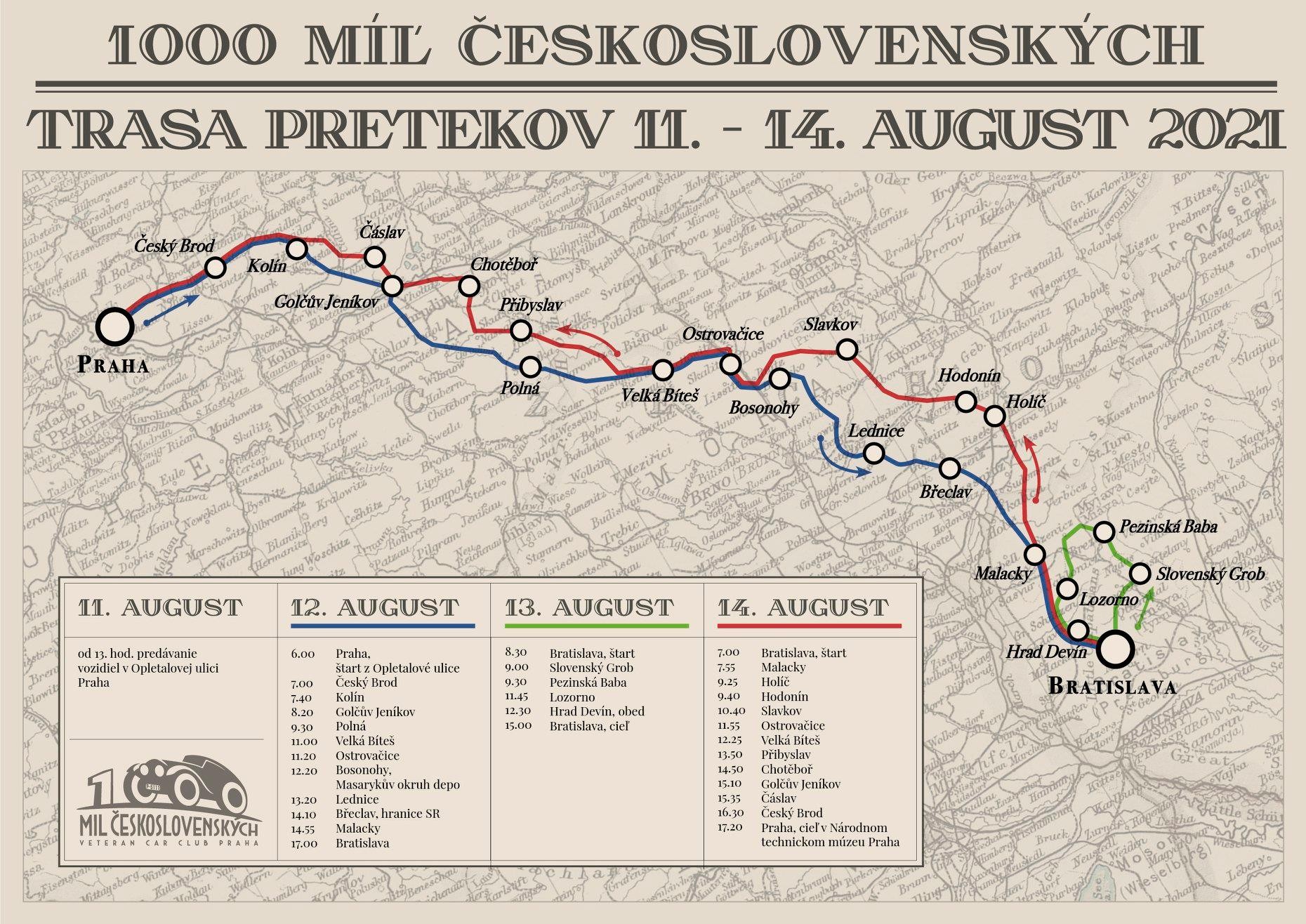 Vo štvrtok vyrazili súťažné posádky na prvú etapu na trase Praha – Bratislava, v piatok (13. 8.) prebehne slovenská časť súťaže. „Počas tejto etapy sa budú musieť pretekári popasovať napríklad s výmenou sviečky na aute či výjazdom na Pezinskú Babu," približili organizátori. Na sobotu (14. 8.), pri ceste naspäť do Prahy, je pripravená jazda zručnosti, slalom na uzatvorenom úseku cesty medzi Záhorskou Bystricou a Stupavou.