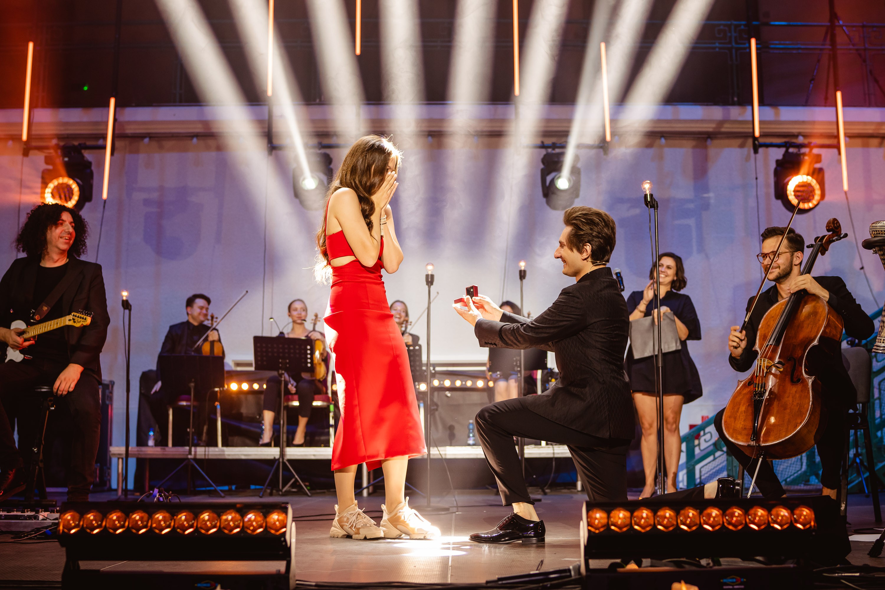 Emocionálnym vyvrcholením koncertu bol však moment, keď svoju dlhoročnú priateľku Luciu Supekovú huslista požiadal o ruku pred plnou sálou nadšených fanúšikov, čím nadšenému publiku vyrazil dych.