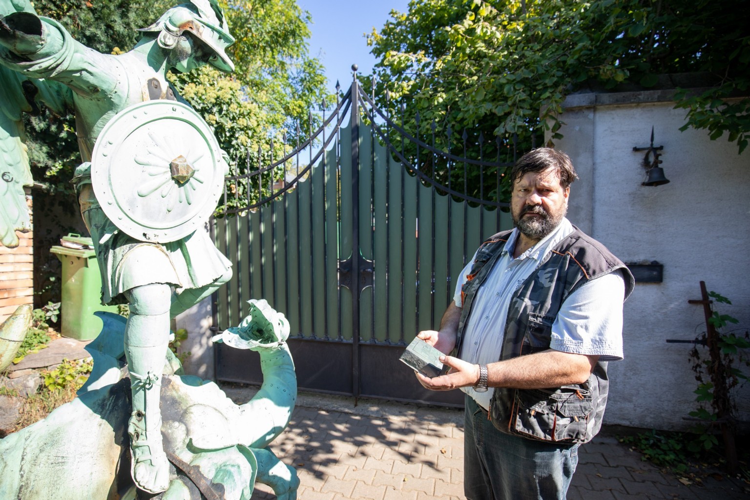 Reštaurátor Stanislav Kožela s časovou schránkou.