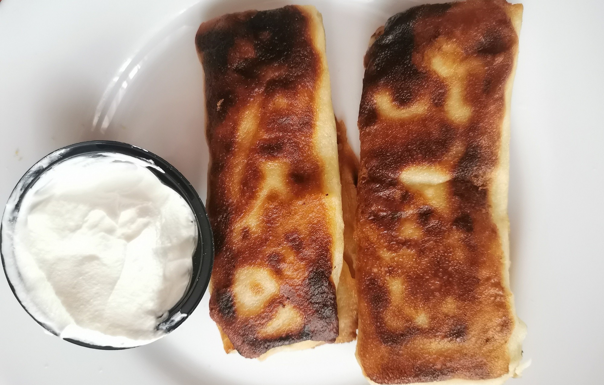 Odporúčame aj Chorciani Blini (5 €) plnené mletým bravčovým a hovädzím mäsom, ochutené gruzínskym korením. Palacinkové cesto nám pri otvorení krabice zavoňalo akoby bolo spálené, ale našťastie tak nechutilo. Bolo super, len na náš vkus dosť mastné. Ako dresing sme mali biely jogurt, ten sa s blinami chuťovo pekne dopĺňal.