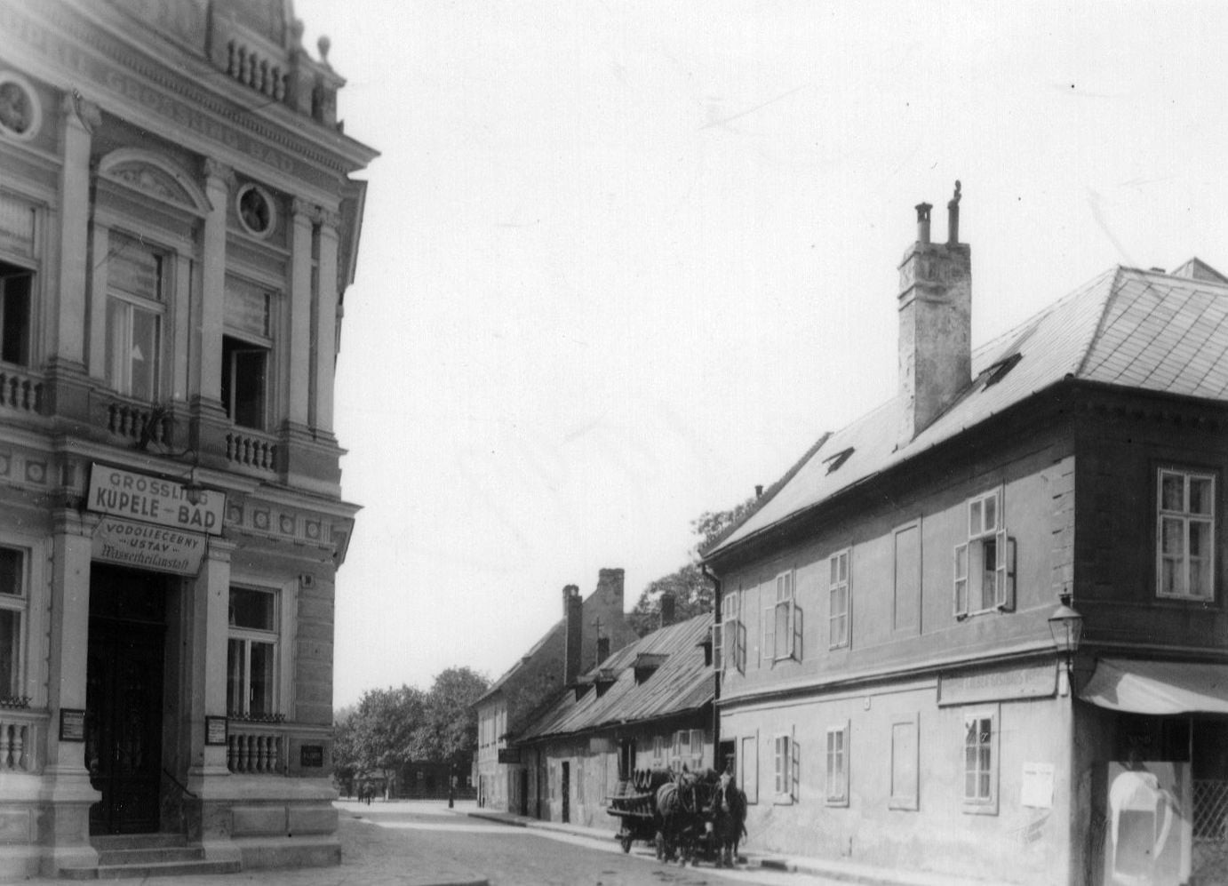 Samozrejme, ulicu "preslávili" najmä kúpele Grössling (naľavo), ktorých budovu postavili v roku 1896. Ich plavecká časť pribudla v roku 1914.