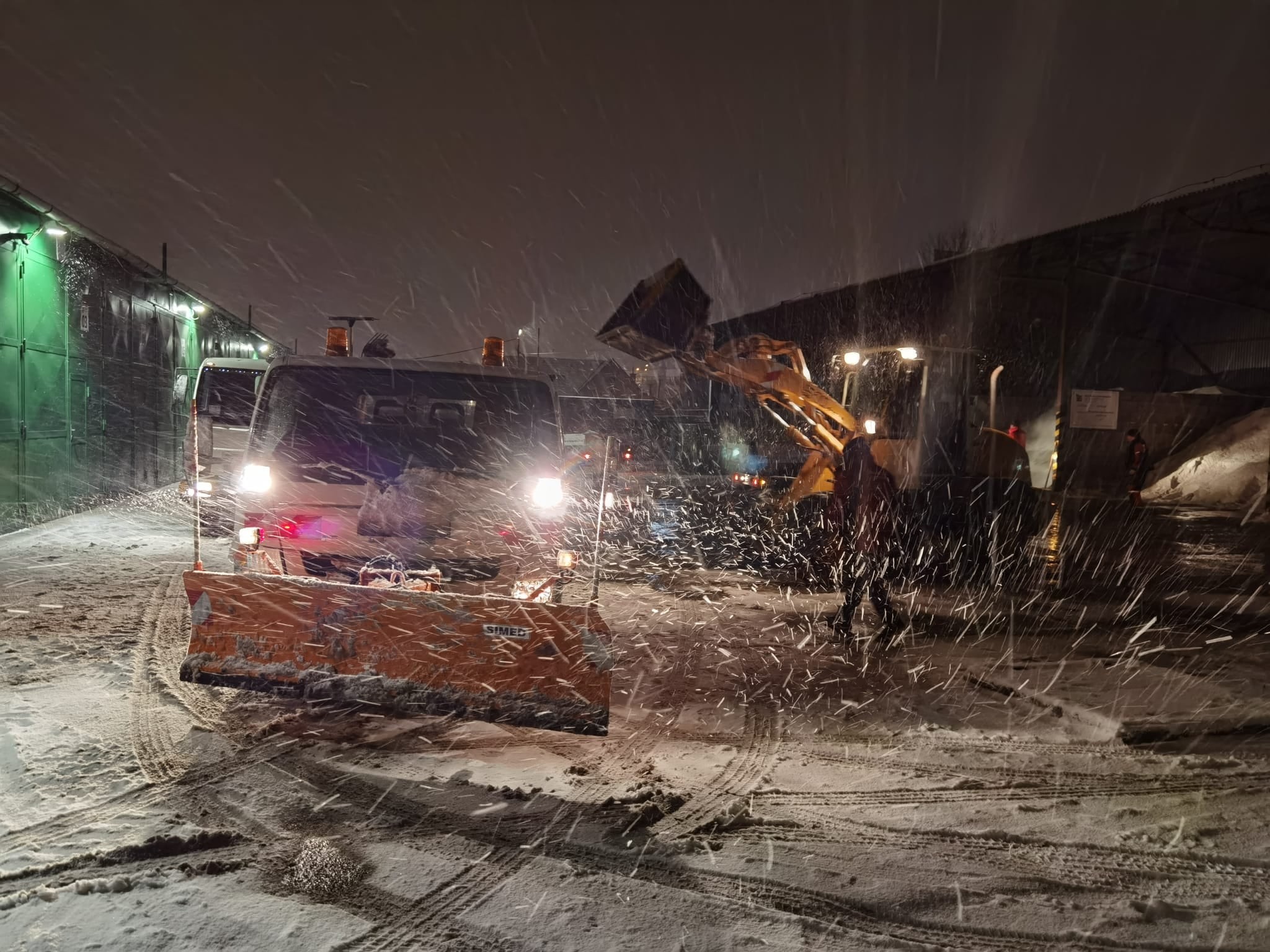 Aj pracovníci ružinovských technických služieb vyrážajú ešte za tmy do zasneženého terénu...