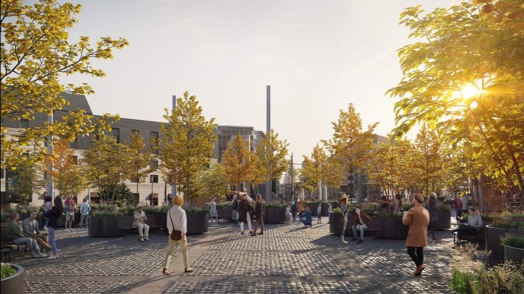Obnovené námestie na vizualizácii: Vysadené stromy poskytnú potrebný tieň.