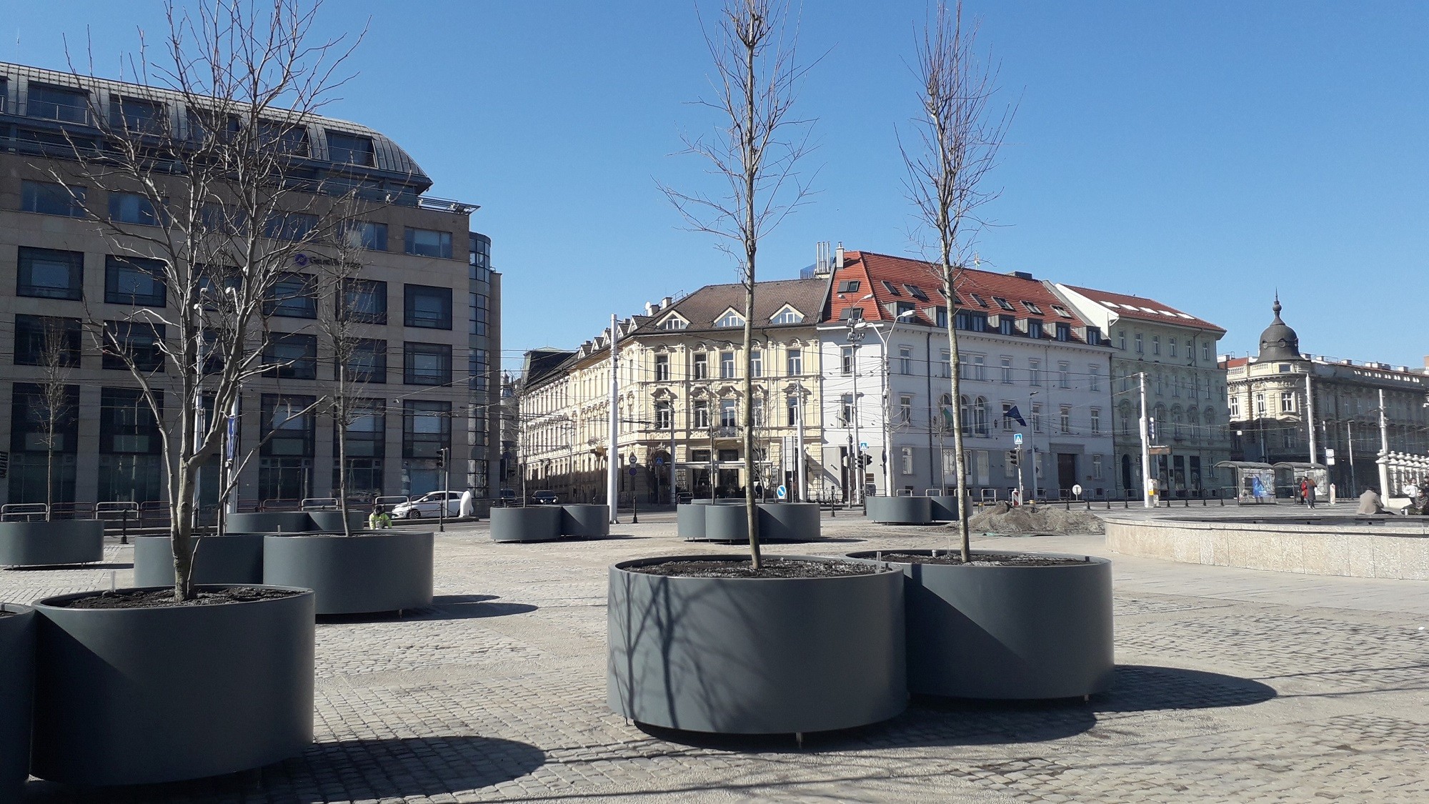 Všimli ste si? Na Hodžovom námestí sú už nové kvetináče, pribudli i stromy, ale len dočasne