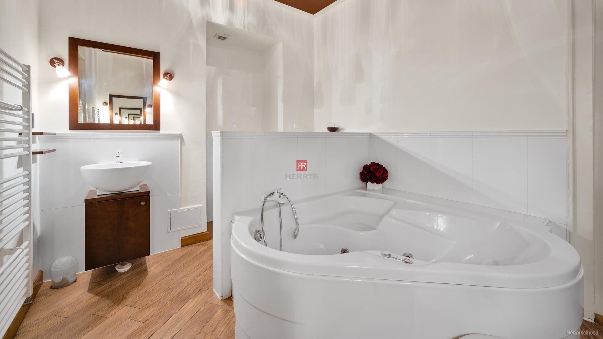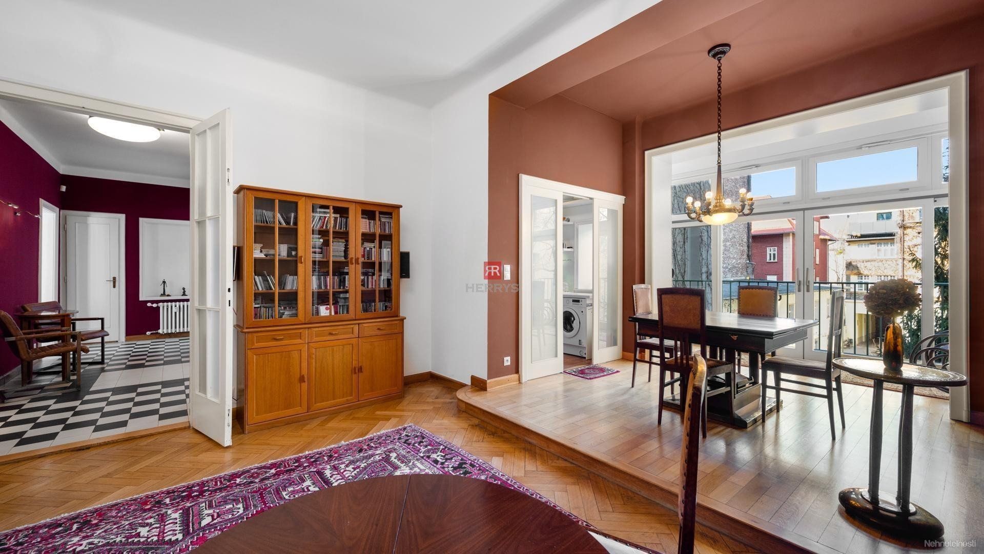 Celková plocha bytu zaberá 201,75 metrov štvorcových. Pozostáva z priestrannej vstupnej haly, toalety, 4 izieb, centrálnej časti prepojenej s jedálňou a kuchyňou, šatníka a dvoch kúpeľní. Zaujímavosťou pre budúceho kupcu je aj to, že majiteľ bytu má podiel aj na pozemku pod domom.