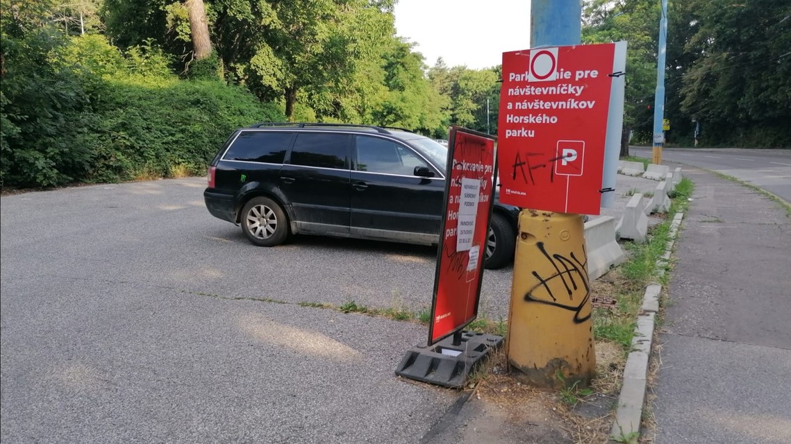 Veľké sklamanie! Na parkovisku pri Horskom parku, ktoré mesto upravilo pre Bratislavčanov, svieti nápis: Súkromný pozemok, neparkovať!