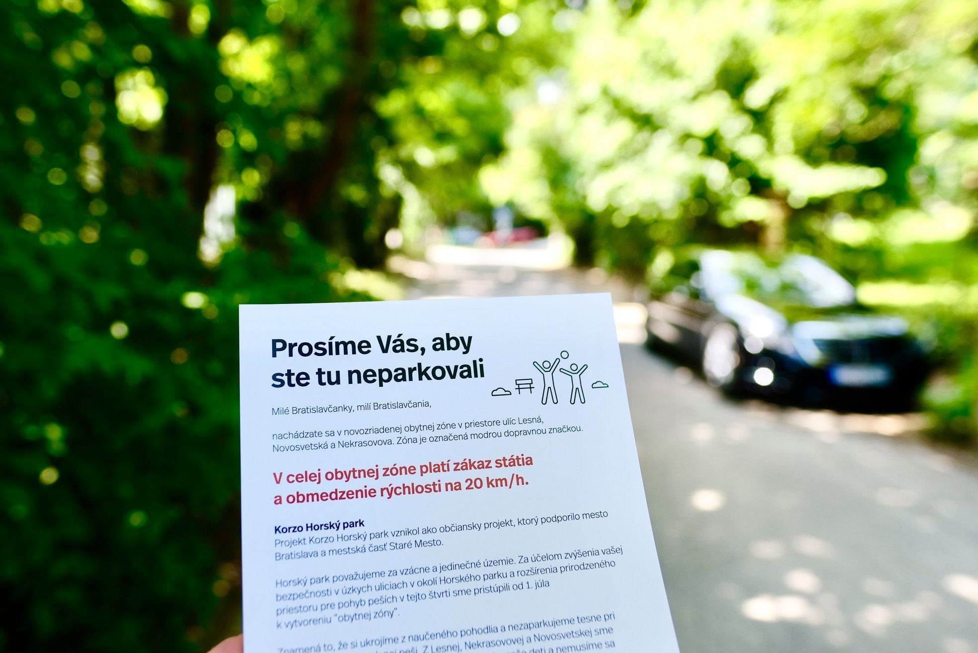 Možnosti parkovania v okolí lesoparku sa zredukovali presne pred dvoma rokmi, keď 1. júla 2020 vznikla obytná zóna Korzo Horský park. Cieľom projektu je priniesť viac pokoja do tohto územia, kam patria aj ulice Lesná, Novosvetská a Nekrasovova.