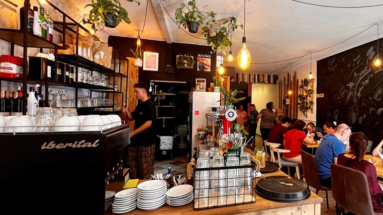 Bistro funguje v domčeku na Jozefskej ulici neďaleko Kollárovho námestia v Starom Meste. Ak nie ste práve v centre, ideálne je prísť mestskou dopravou alebo hoci na kolobežke, aby ste nemuseli riešiť problém s parkovaním. Prekvapilo nás, že už pred dvanástou bolo plno, jedálny lístok bez kúska mäsa má zjavne veľa fanúšikov. Našli sme posledný voľný stôl v príjemne klimatizovanej miestnosti, sedieť sa však dá aj vonku na terase.