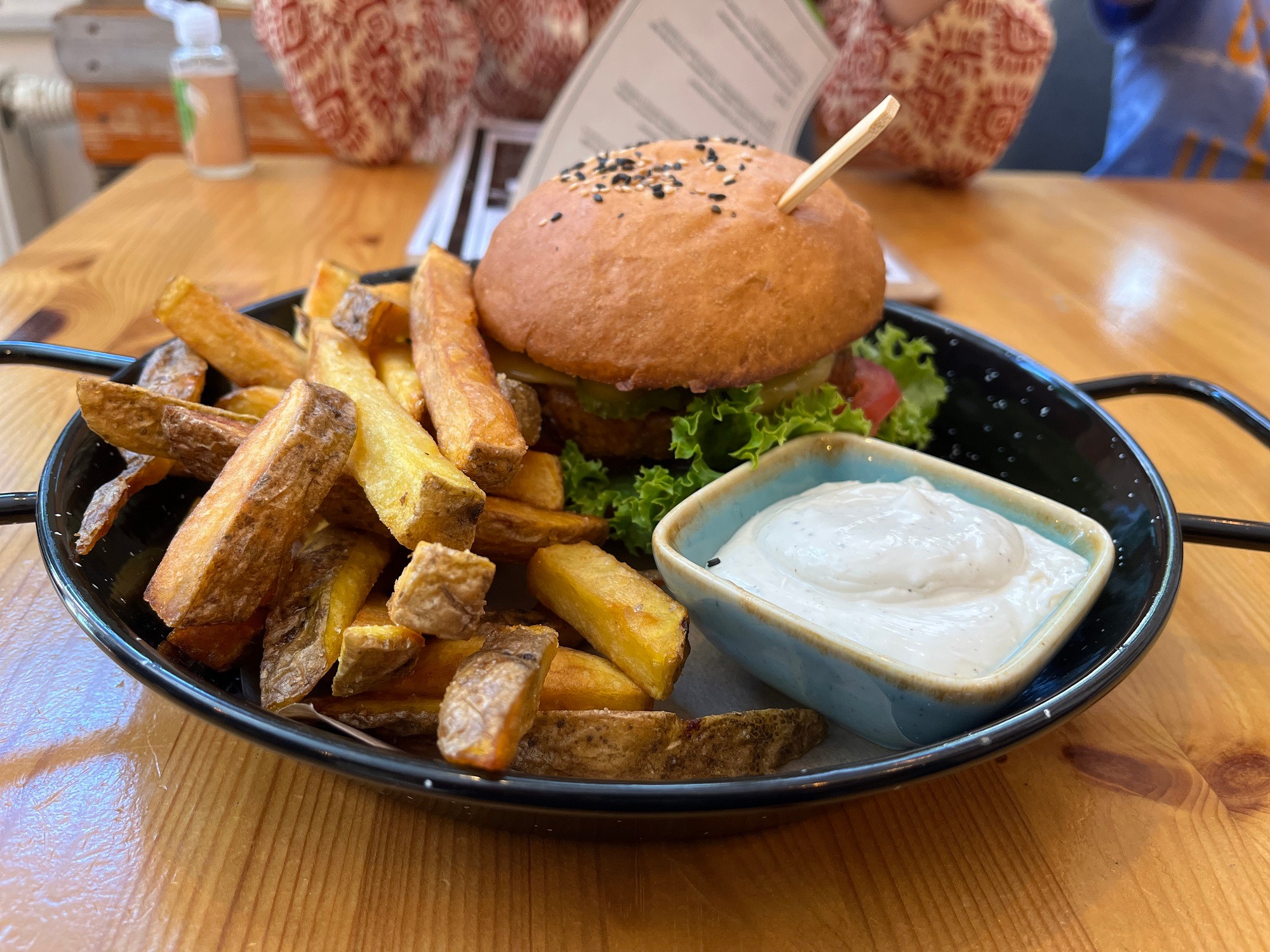 Prvá dôležitá informácia je, že špeciály ako Vegan tatarák či Vegan BBQ rebierka podávajú až od 14. hodiny. Asi ani netušíte, koľko gastro zážitkov dokážu majstri kuchári vyčarovať aj bez použitia mäsa, treba prísť a vychutnávať. Keďže sme si však dohodli obed na pravé poludnie, vyberať sme si mohli len z ponuky streetfoodu alebo si objednať denné menu. Rozhodli sme sa pre oboje a na stole sme mali všetko expresne rýchlo.