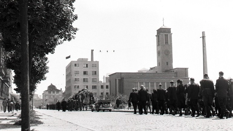 Smútočný sprievod na Legionárskej ulici v júli 1945