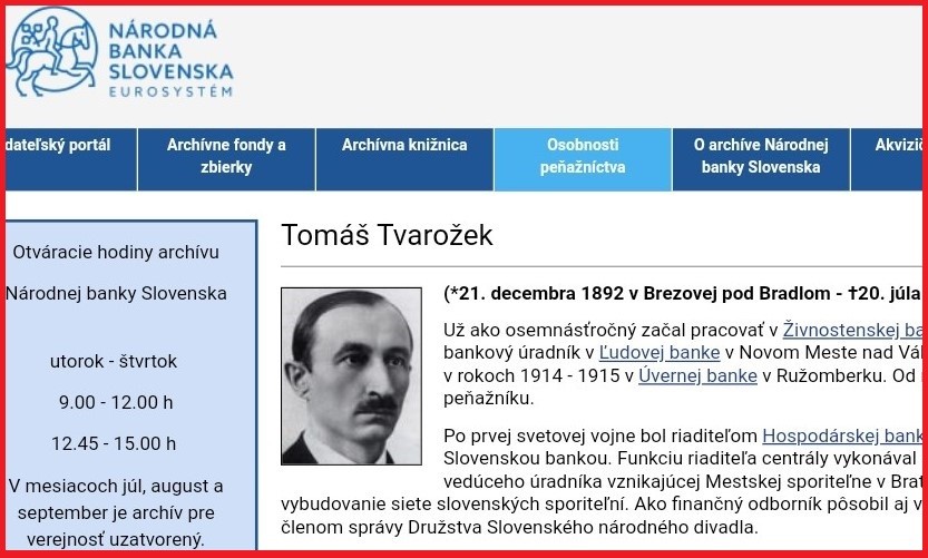 Tomáš Tvarožek v archíve NBS