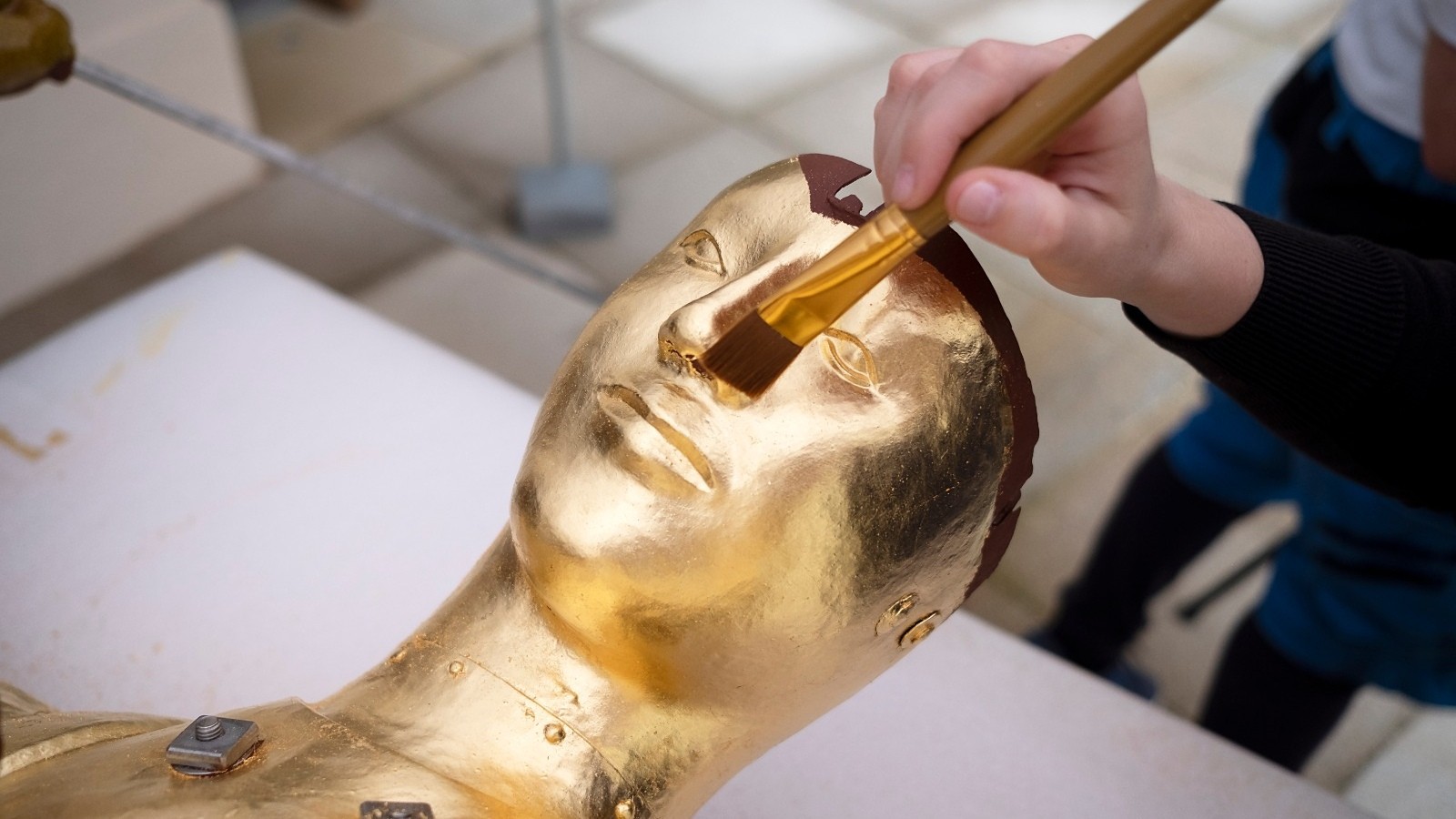 Schránka po uzatvorení poputuje naspäť tam, kde bola nájdená, teda do hlavy sochy Archanjela Michala. Súsošie Archanjela Michala bojujúceho s drakom momentálne prechádza procesom zlátenia. „Pri archívnom a reštaurátorskom výskume sochy sa ukázalo, že plastika bola pravdepodobne pôvodne pozlátená, preto sme sa rozhodli pristúpiť k jej pozláteniu 23,75-karátovým plátkovým zlatom aj tentokrát,“ uvádza Patrik Baxa, historik architektúry, ktorý realizoval výskum sochy. Proces zlátenia prebieha verejne, v exteriéroch nádvoria Apponyiho paláca na Radničnej 1, a verejnosť sa naň môže prísť pozrieť do 26. septembra.
