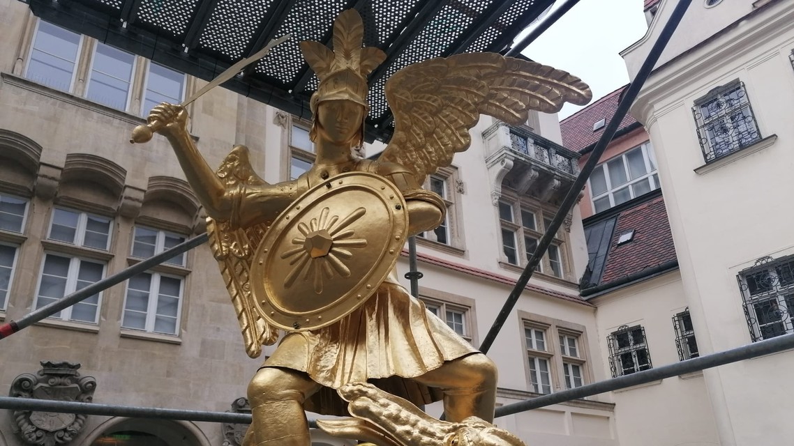 Zreštaurovanú a pozlátenú sochu archanjela Michala bojujúceho s drakom, vytvorenú v 18. storočí, vrátia v nedeľu popoludní späť na vrchol Michalskej veže v Bratislave. Po nainštalovaní sochy bude do jej hlavy vložená aj nová časová schránka. Sochu sňali vlani pre komplexnú rekonštrukciu Michalskej veže, ktorá jej má prinavrátiť jej pôvodnú barokovú podobu z roku 1758.