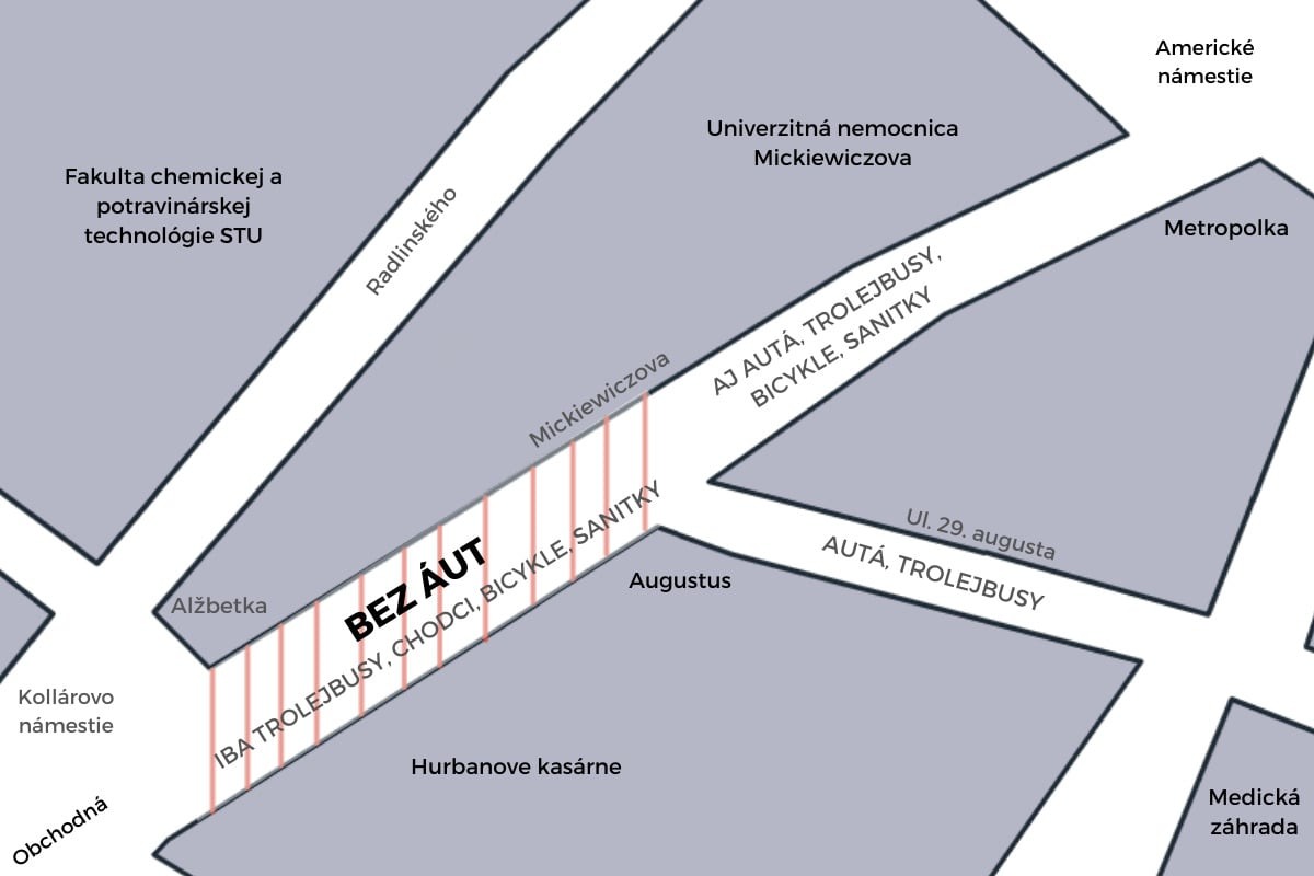 Obyvatelia, ktorí bývajú v tejto lokalite, alebo tu majú svoje prevádzky dlhodobo poukazujú na neúnosný stav dopravy. Dopravné zápchy významne zhoršujú kvalitu života obyvateľom, ale aj majiteľom prevádzok. „Prakticky každý deň sme svedkami toho, ako dynamika dopravy komplikuje prejazd mestskej hromadnej dopravy, ale aj sanitkám záchrannej zdravotnej služby, nakoľko v lokalite má sídlo najstaršia nemocnica v Bratislave,“ hovorí Andrej Králik, zástupca petičného výboru a dodáva: „Primátora Matúša Valla a Magistrát hlavného mesta Bratislava sme požiadali o obmedzenie tranzitnej dopravy na Mickiewiczovej ulici v časti od Kollárovho námestia po Ulicu 29. augusta.“
