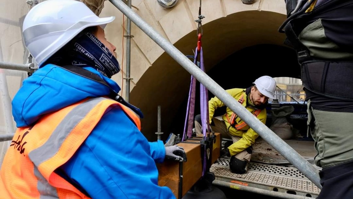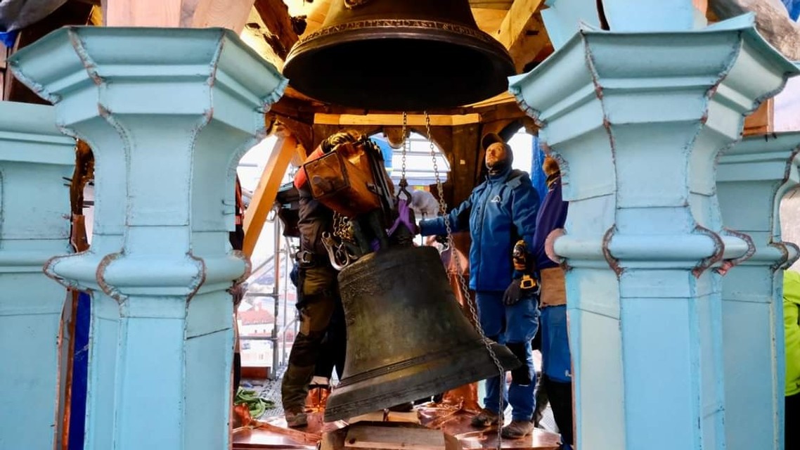 Na Michalskú vežu v Bratislave, ktorá prechádza generálnou rekonštrukciou, sa vo štvrtok opäť vrátili zvony. Umiestnili ich na pôvodné miesto v lucerne, ktorá je súčasťou helmice veže.