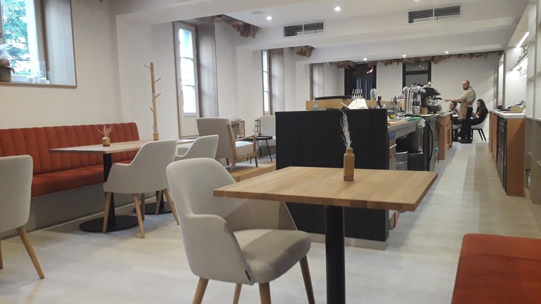 V interiéri sa cítime pohodlne, zariadený je vkusne, s jednoduchou eleganciou, a hostí v čase nášho obeda je málo - o to viac sa nám môže venovať čašník. Ako prvé nám približuje koncept podniku, ktorý spája príjemné prostredie s modernou gastronómiou, kde si dajú záležať na originálnych chutiach a trendovom prevedení. Vyberať si môžeme zo všetkého, čo majú v ponuke, od raňajok až po večere, no predsa len dostávame tip.
