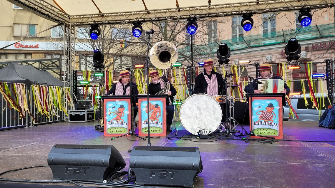 K fašiangom tradične patrí živá hudobná aj tanečná zábava, vyvrcholením celodenného programu preto bude o 16:30 na hlavnom pódiu pred tržnicou koncert hudobníkov z formácie Preßburger Klezmer Band.
