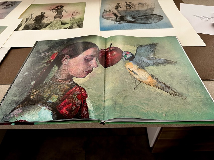 "Touto výstavou sme sa chceli pokloniť tradíciám, folklóru a potešiť piesňami. Galéria KUW je malý priestor, ale ľudia sa veľmi tešili," prezradila nám akademická maliarka Katarína Vavrová. Kniha vznikala dva roky, piesne do nej vyberal Ľubomír Feldek. Jeho citlivý a krásny výber zahŕňa aj goralské piesne či maďarskú a rómsku pieseň. Ilustrácie vytvorenené Katarínou Vavrovou na motívy spomínaných piesní sa nesú v duchu fantazíjneho realizmu.