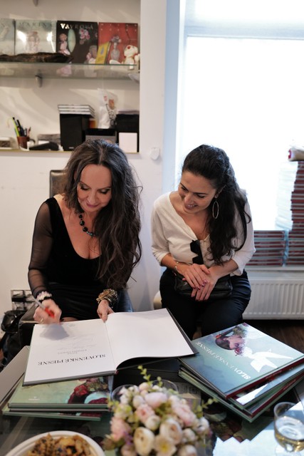 Jacqueline Rudavsky, Zdena Studenková a v pozadí fotografia Karola Plicku dotvorená šperkom od Jacqueline.