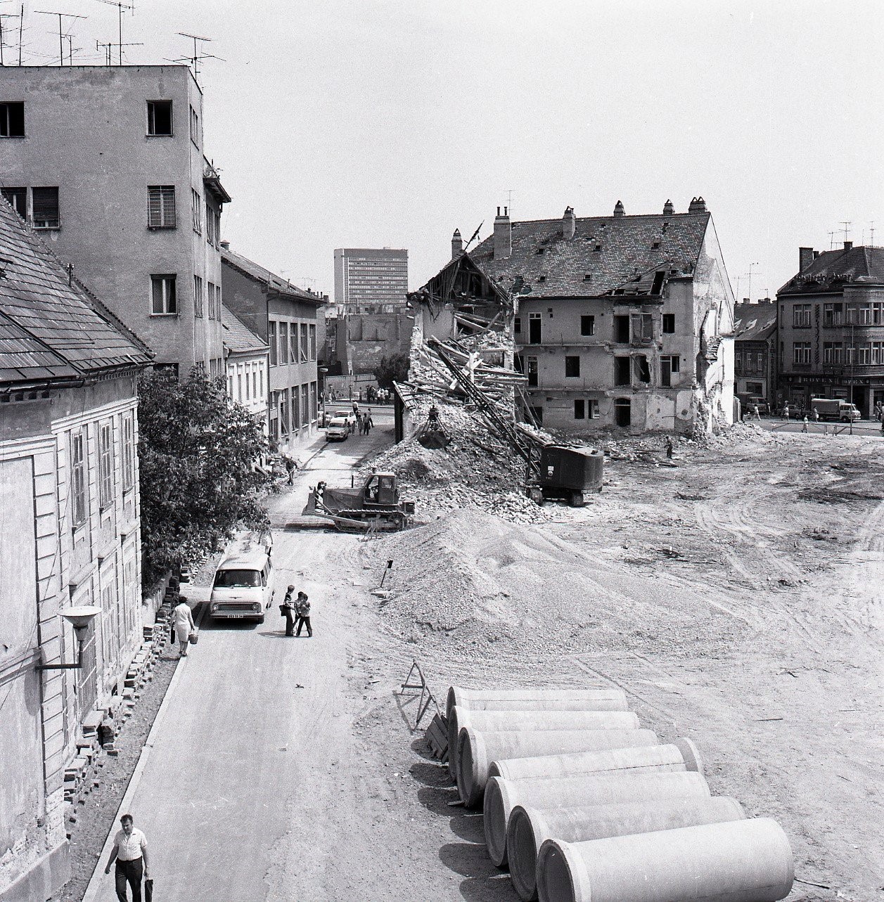 Rok 1974: Asanačné práce na úseku Suchého mýta a Konventnej ulice v roku.