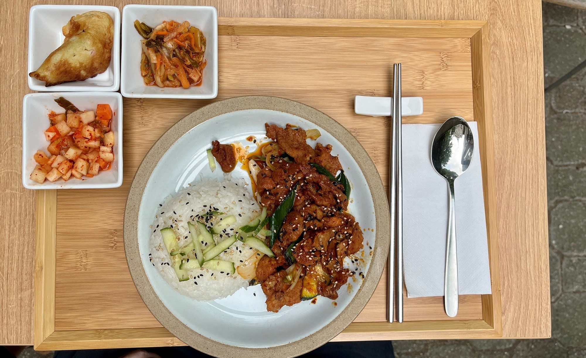 Novú kórejskú gastroprevádzku Banchan (v kórejčine príloha), ktorá je trochu bistro a trochu streedfood, nájdete na hornom konci Obchodnej ulice v malom dvore. Sedí sa tu príjemne, v tieni, s pocitom, akoby bola obsluha iba pre vás - nezažijete ho v každom podniku. Úplne sme sa spoľahli na výber z denného menu, ktorý nám navrhol Ervin. Podrobne pritom opísal, akú špecialitku nám pripravia, a pridal aj zaujímavosti o kórejskej kuchyni, ktorá patrí k najzdravším na svete.