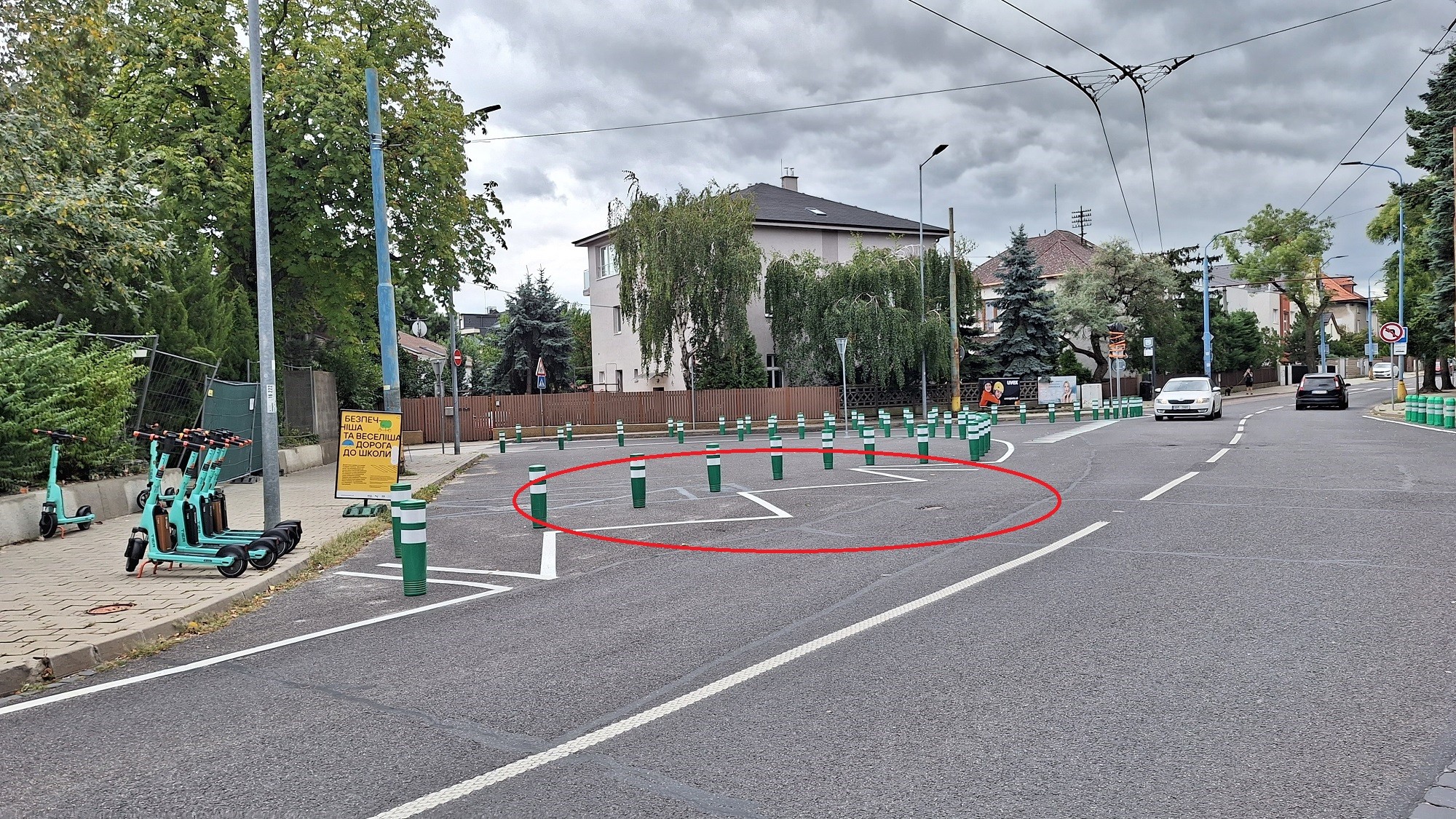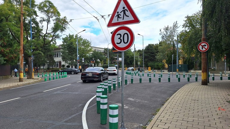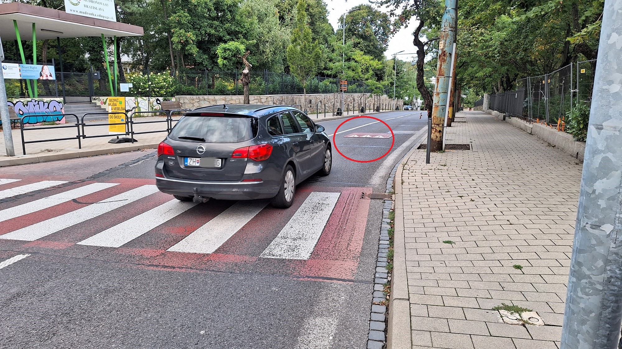V záujme väčšej bezpečnosti detí zatiaľ pribudli – okrem zelených stĺpikov – retardéry pred priechodom, ktorý je priamo pred školou, aby spomalili prechádzajúce autá. Má to však chybičku, ako upozornil náš čitateľ, Staromešťan Ivan: „Retardér v smere k Bratislavskému hradu a ďalej do centra je umiestnený tak, ako má byť, pred priechodom, a autá tam naozaj brzdia. Zato v opačnom jazdnom pruhu smerom na Búdkovú ulicu ho osadili až za priechodom. Je to veľmi nebezpečné, keďže núti auto brzdiť na priechode, kadiaľ pôjdu deti do školy. Dúfam, že to čím skôr napravia.“