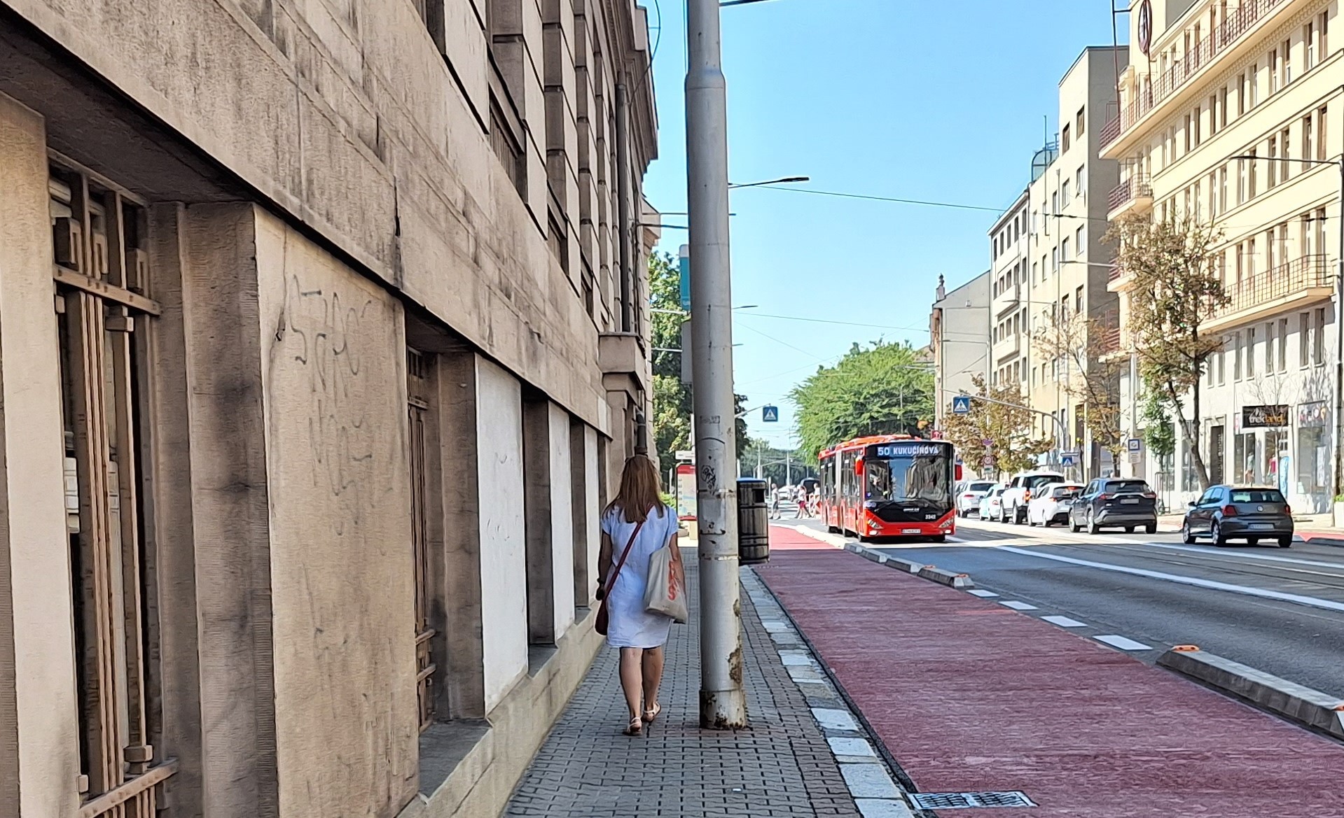 Už predtým sme upozornili aj na to, že veľkorysý pruh pre cyklistov od múzea po Šafárikovo námestie občas využije i nejaké to osobné auto. Zato šírka chodníka pre peších popri budove Filozofickej fakulty k Fajnorovmu nábrežiu je viac ako skromná, mamy s kočíkmi by mali problém tadiaľto prejsť – i keď je tiež pravda, že zvolia radšej oveľa príjemnejšiu cestu po chodníku priamo popri Dunaji. Napriek tomu nás zaujímalo, či mesto plánuje v blízkom čase aj zmeny na nábreží v prospech chodcov, prípadne, či sa bude nejako riešiť spomínaný chodník s nevyhovujúcou šírkou. Keby mesto ubralo zo zbytočne širokej cyklotrasy, bol by priestor na rozšírenie chodníka.