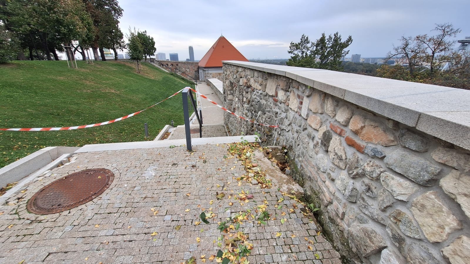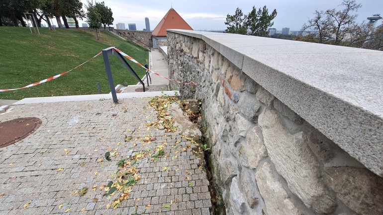 AKTUALIZOVANÉ Bratislavčanov znepokojili fotografie chodníka pod Bratislavským hradom, ktoré zaplavili sociálne siete. Medzi chodníkom a múrom pri Žigmundovej bráne, ktorý sa hrozivo nakláňa nad ďalší chodník, je už niekoľkocentimetrová prasklina. Okamžite sa začali vynárať otázky, či tento stav nemôže súvisieť s výstavbou štvrte Vydrica, ktorá rastie pod hradným kopcom.