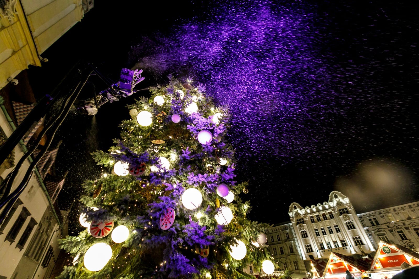 Rozsvietený vianočný stromček na Hlavnom námestí.