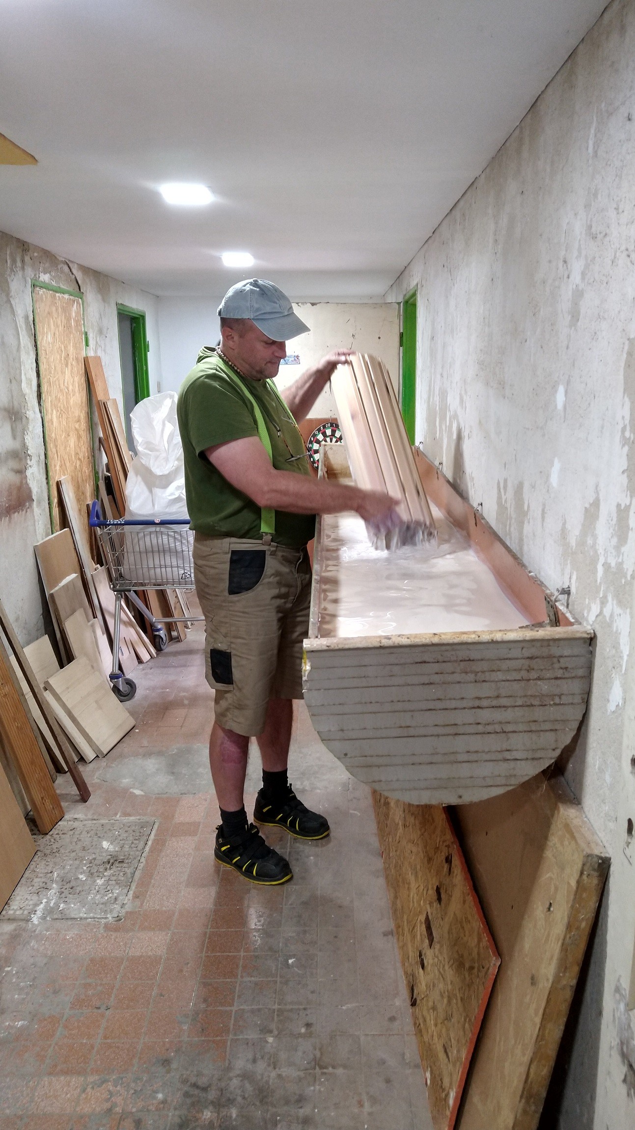 Každá z niekoľkých miestností má svoj účel. Chodba tiež. „V tejto trojmetrovej vani rolety kúpeme,“ hovorí a ukáže nám to aj prakticky. Roleta dostane hĺbkovú impregnáciu, ktorá odpudzuje aj hmyz. Nie je to zbytočné. Keď ich dáva dole z okien a berie na repasovanie, okrem prachu a špiny neraz narazí aj na hniezdo ôs či sršňov. „To keď sa s roletou nehýbe,“ vysvetlí Peter Korenačka. „Už som dostal pár žihadiel. Jedno aj do hlavy, keby som bol alergický, už sa spolu nebavíme.“