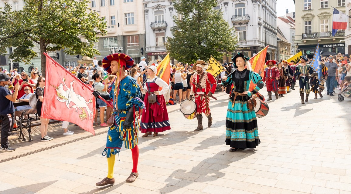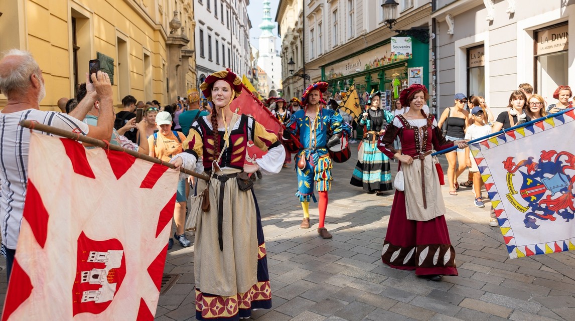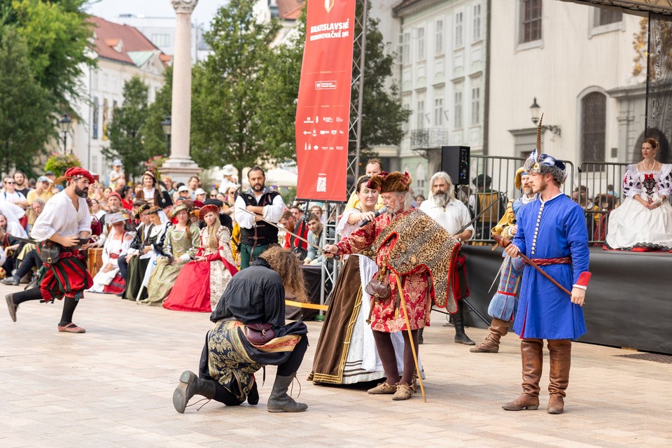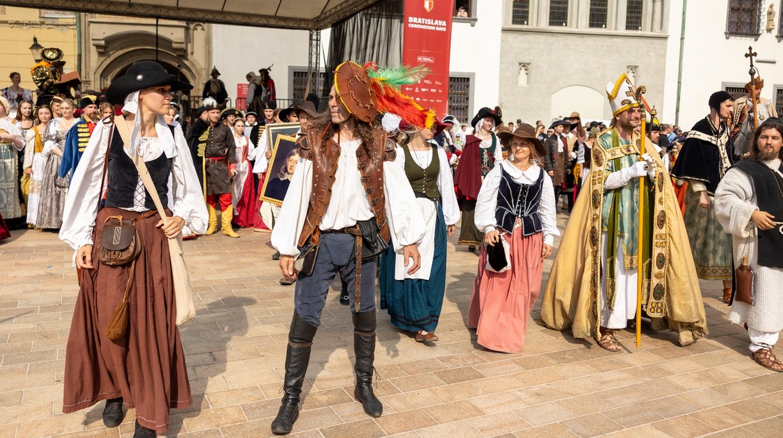 Ulice bratislavské Starého Mesta v sobotu ožili korunováciou uhorského kráľa Jozefa I. z roku 1867, ktorý zasadol na trón ako deväťročný. Bratislavské korunovačné dni priniesli na Bratislavský hrad, Hlavné námestie program plný šermu, tanca a dobovej hudby.
