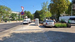 Dočasné riešenie na Mudroňovej - už po odstránení plastových kužeľov.