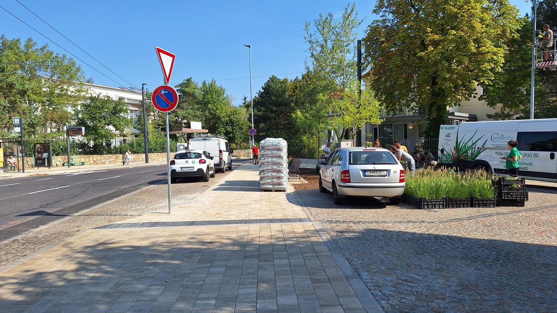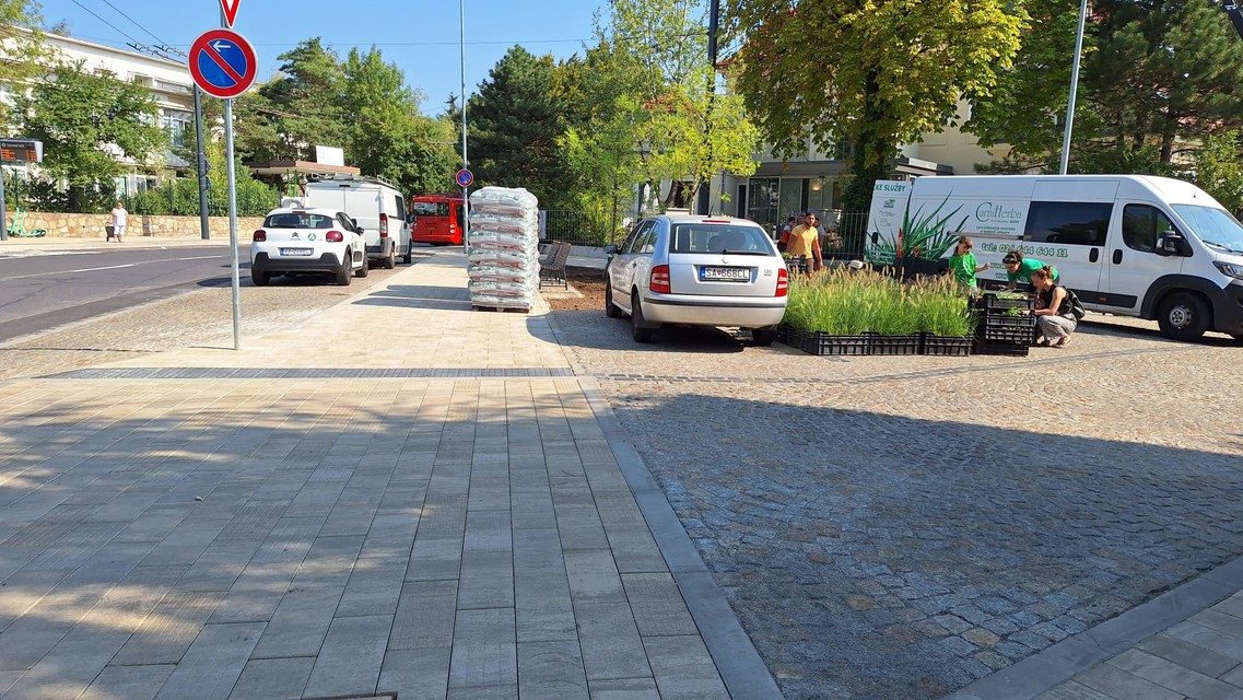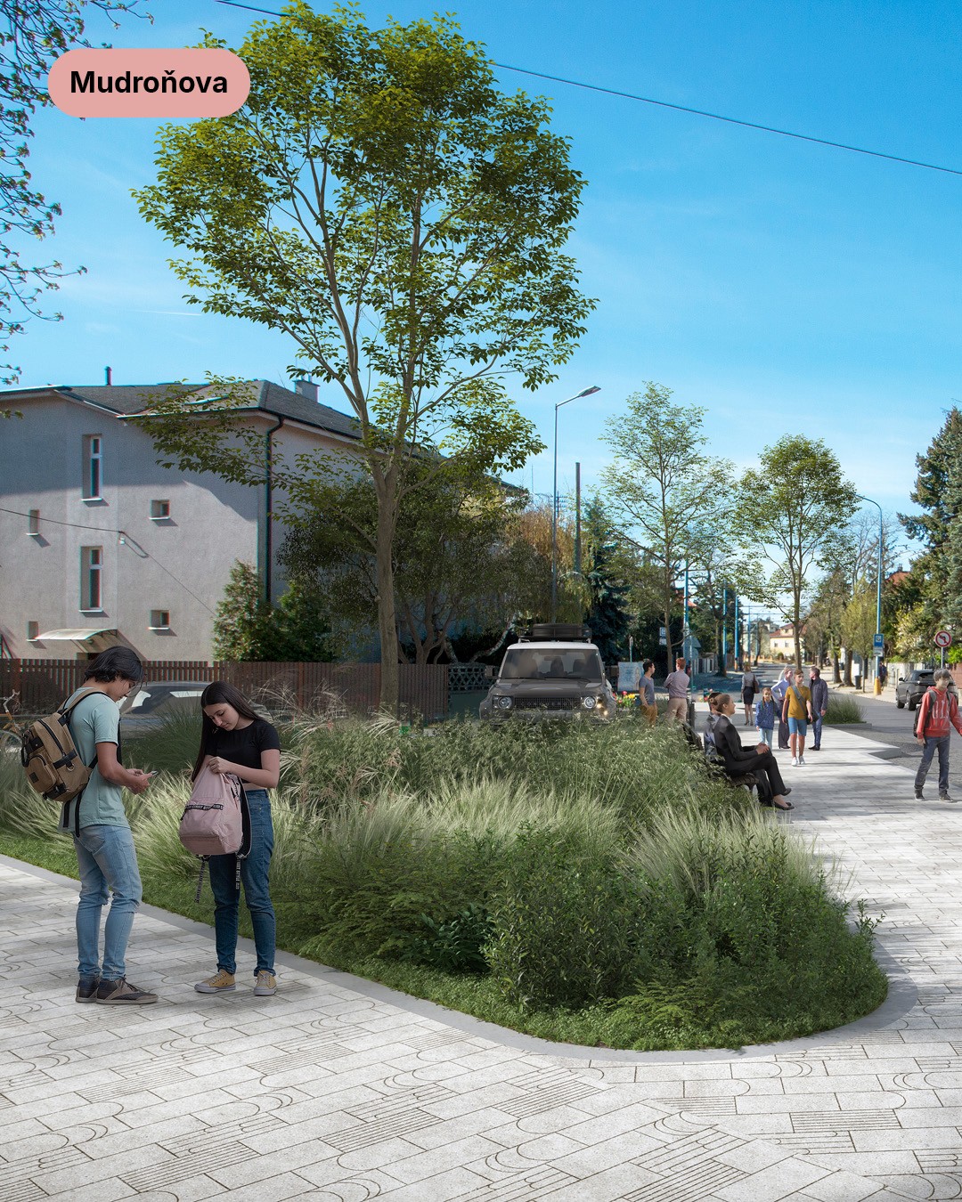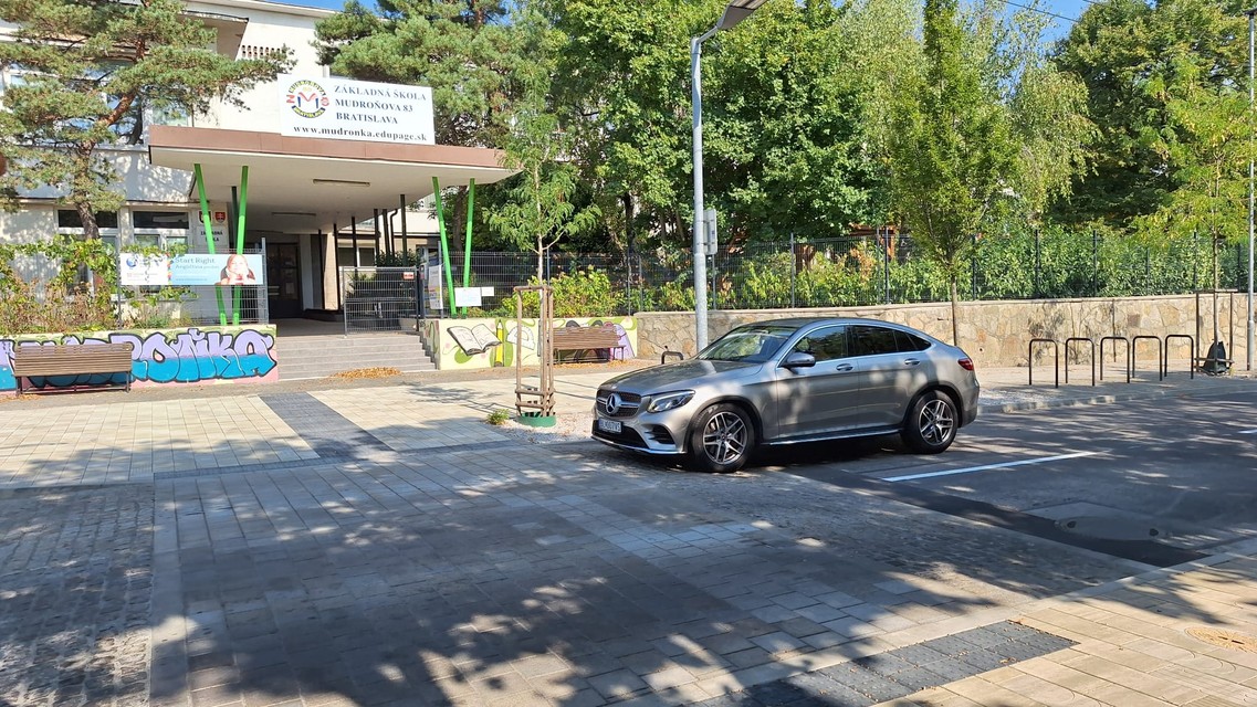 Na Mudroňovej pribudla nová dlažba, má vzniknúť šesť parkovacích miest v zálivoch na krátkodobé státie pre rodičov a ďalšie štyri parkovacie miesta pred hotelom. Spolu so šiestimi miestami na 20-minútové státie na Myjavskej tak má byť v rámci úprav tohto priestoru vytvorených dohromady 16 miest na krátke parkovanie.