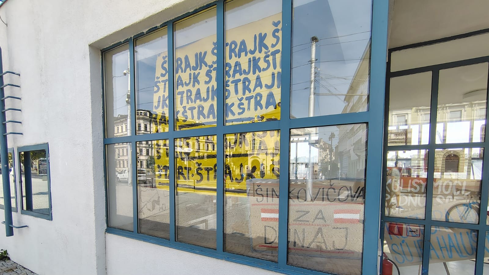 Budova Propelleru sa premenila na výkladovú galériu transparentov z protestov