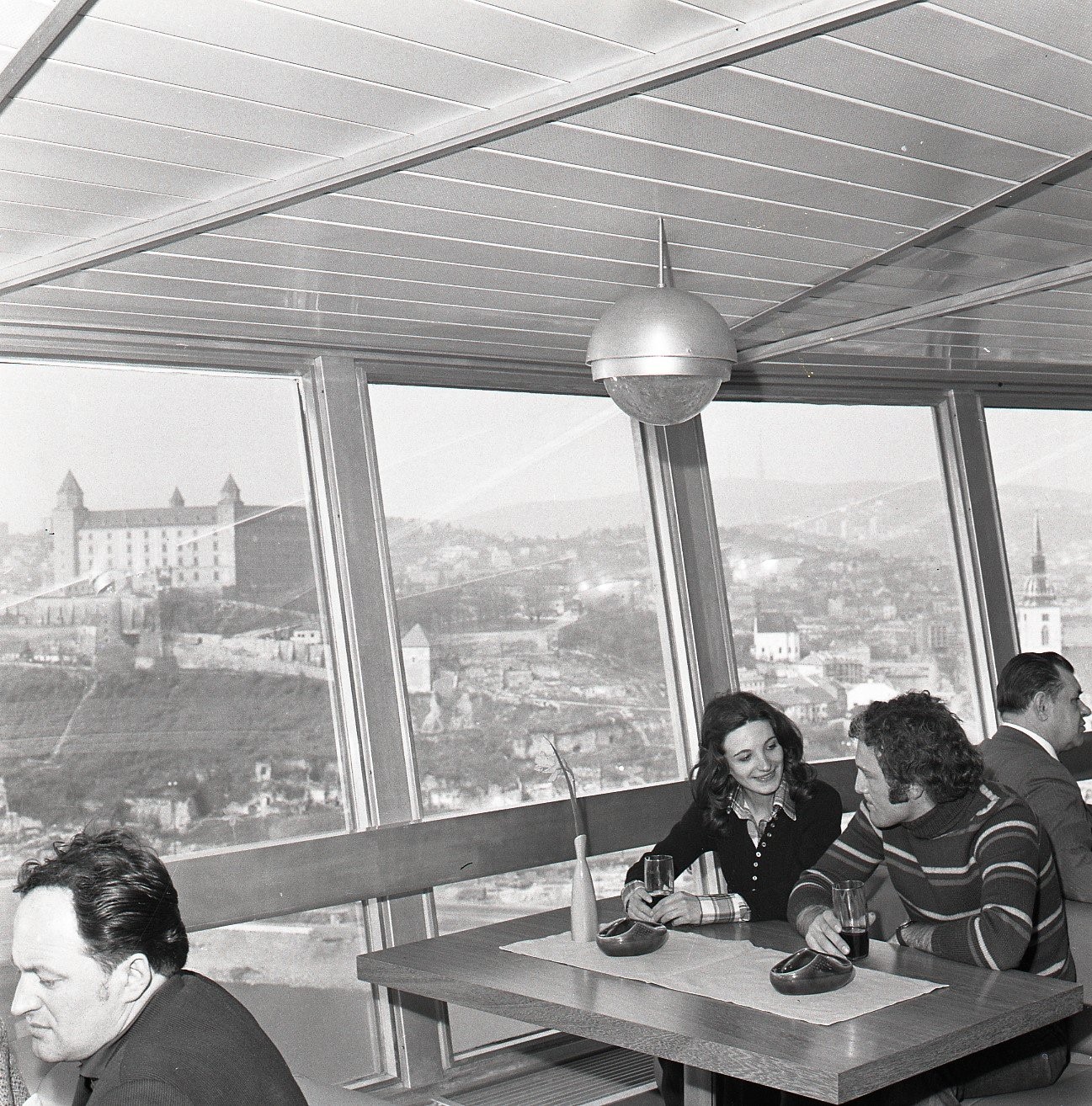 Marec 1974: Prvé dni prevádzky exkluzívnej bratislavskej novinky - kaviarne Bystrica (dnes UFO) na vrchole pylónu vo výške 85 m