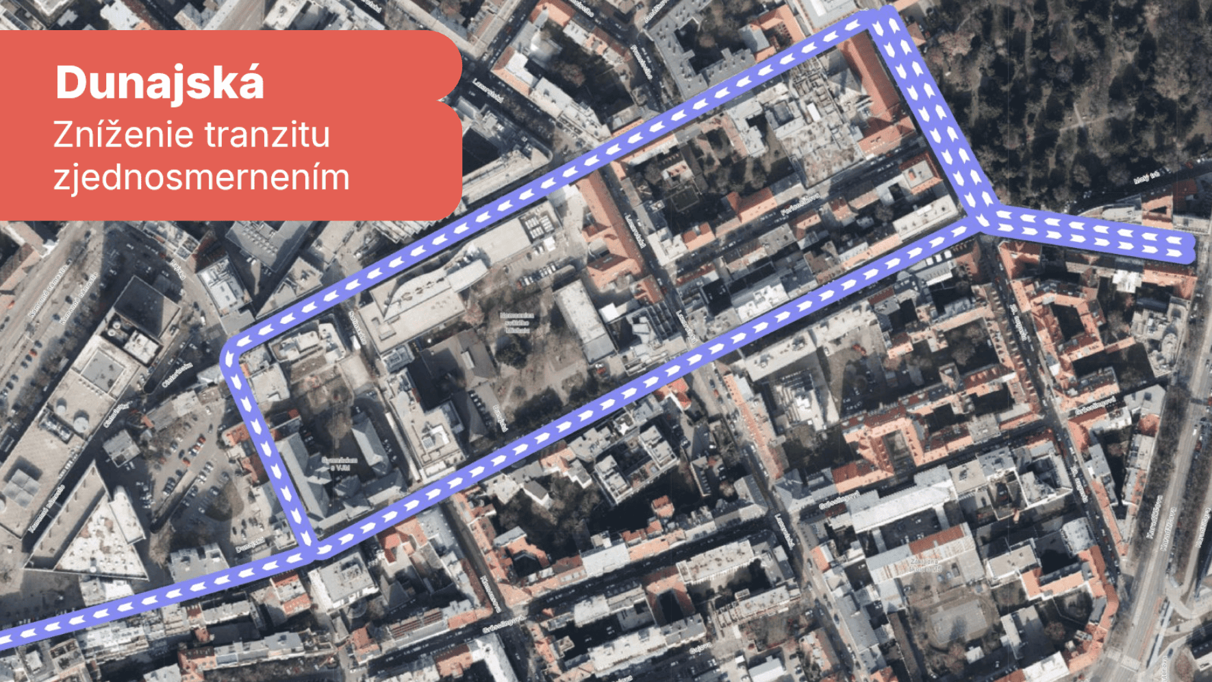 "Dunajská je mimoriadne dôležitá rezidentská ulica v centre nášho mesta. S jej revitalizáciou sme začali už v 2022 a teraz chceme pokračovať. Z participácie v réžii Mestskej časti Staré Mesto vieme, že až 74 % obyvateľov vníma upokojenie a spomalenie dopravy ako dôležitý krok k zlepšeniu kvality štvrte. Sčítanie dopravy zas ukázalo, že 30 % áut v smere z Mlynských nív tadiaľto len prechádza na Štúrovu. Preto základom projektu je zjednosmernenie Dunajskej ulice od križovatky s Rajskou ulicou v smere na Mlynské nivy," avizuje magistrát.