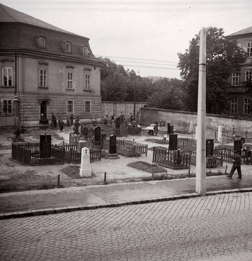 1945: Pred Grasalkovičovým (Prezidentským) palácom boli desiatky hrobov s kamennými pomníkmi.