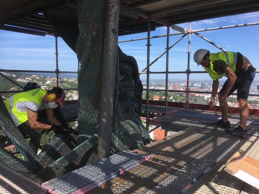 FOTOGALÉRIA (socha vojaka na Slavíne počas obnovy):
