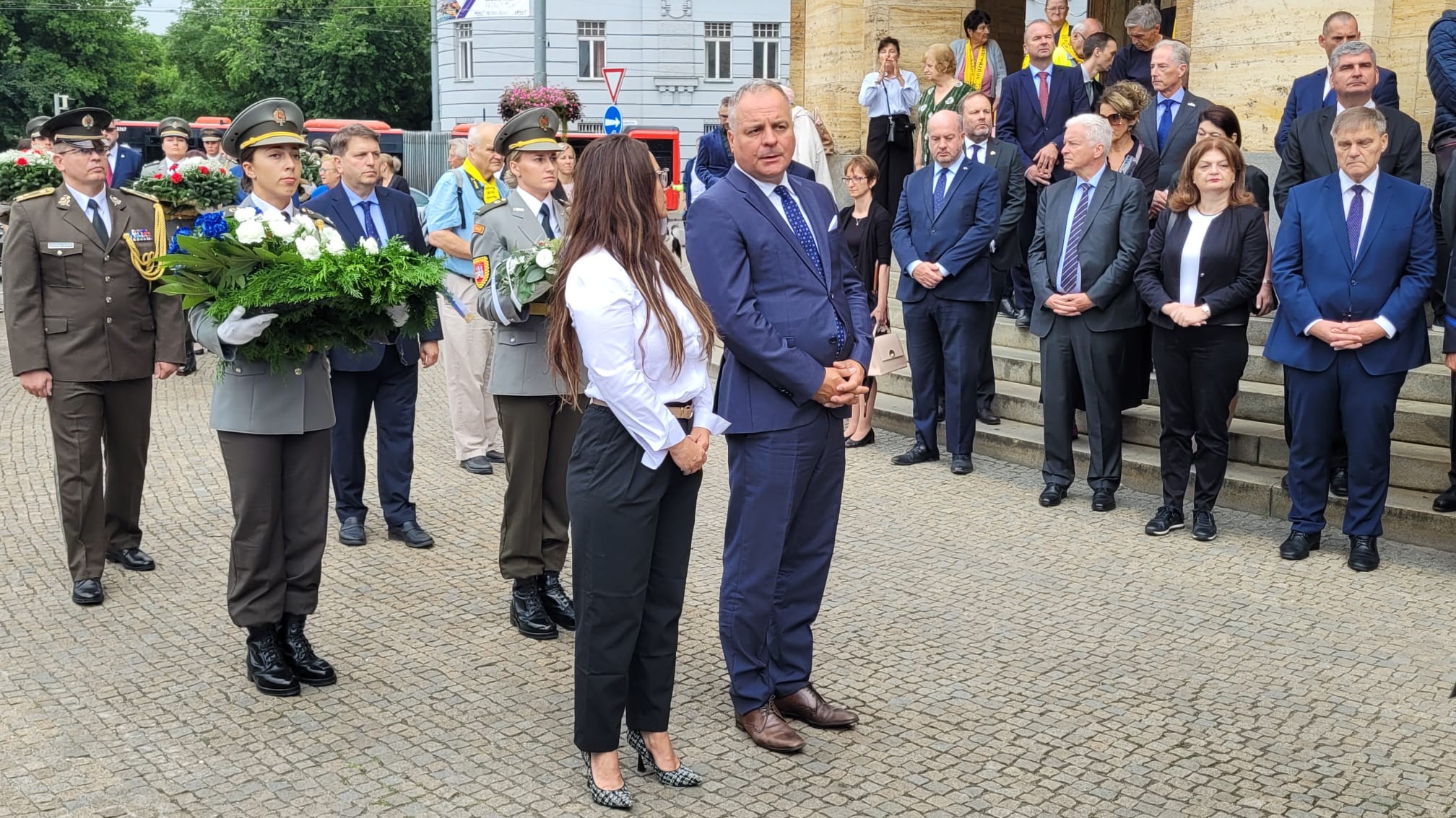 Vzdať úctu obetiam okupantov prišiel so svojimi spolustraníkmi aj expremiér a podpredseda strany Demokrati Eduard Heger.