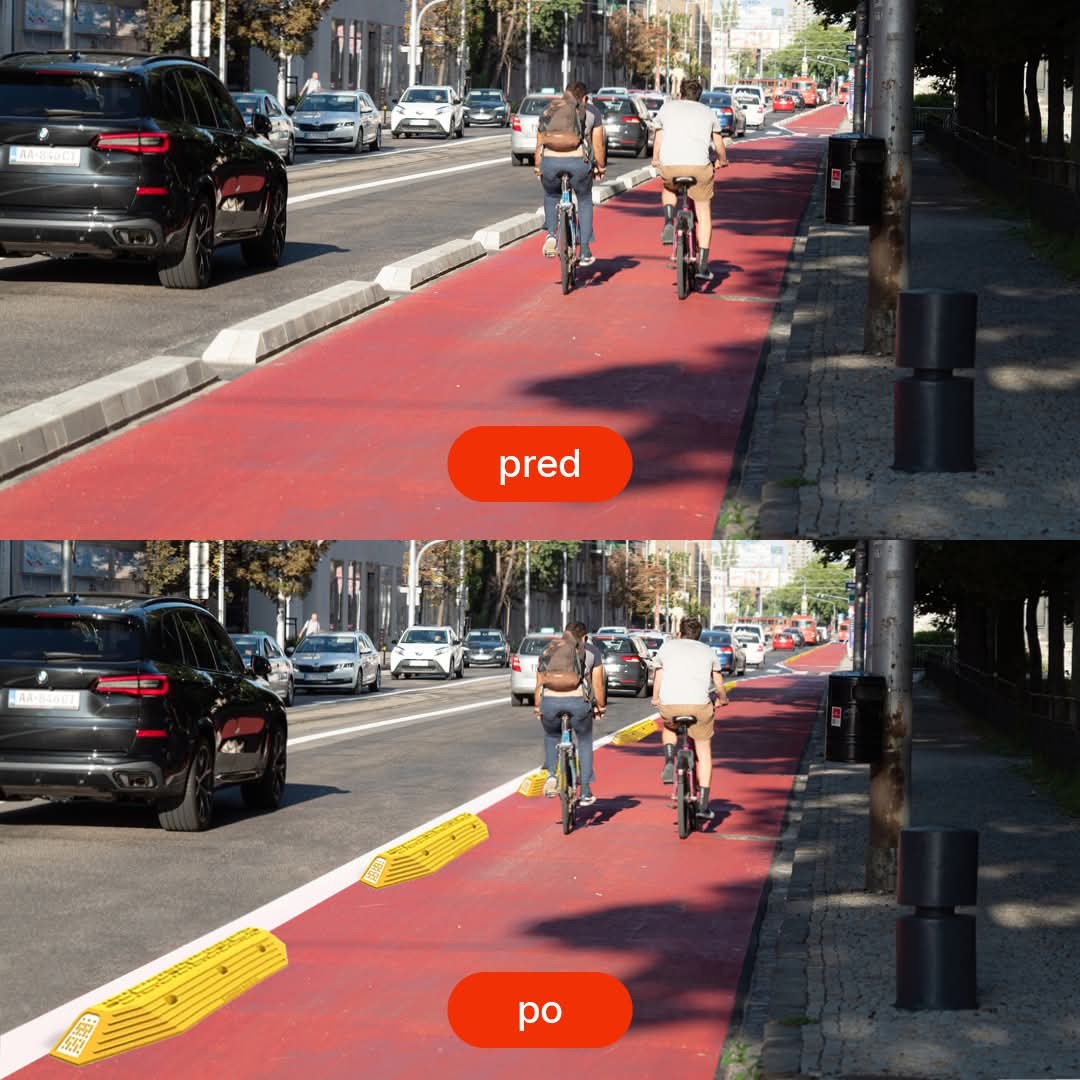 Plastové obrubníky budú mať skosené hrany, sú z mäkkšieho materiálu a obsahujú aj reflexné prvky. "Zároveň v najširších úsekoch cyklotrasy budú obrubníky posunuté smerom do cyklotrasy tak, aby bola cesta komfortnejšia pre vozidlá. Toto riešenie považujeme za najlepší kompromis, ktorý rešpektuje požiadavky ministerstva dopravy a s ktorým zároveň súhlasí Krajský dopravný inšpektorát," priblížil magistrát.