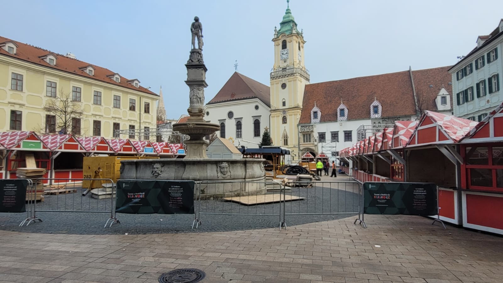 Prípravné práce na vianočných trhoch, teda budovanie stánkov, rýchlo napredujú aj na Hlavnom námestí. Tieto trhy sú zas v réžii magistrátu.