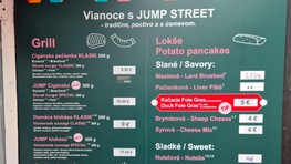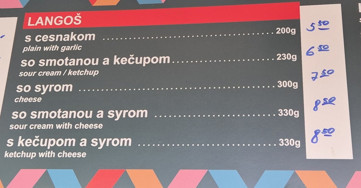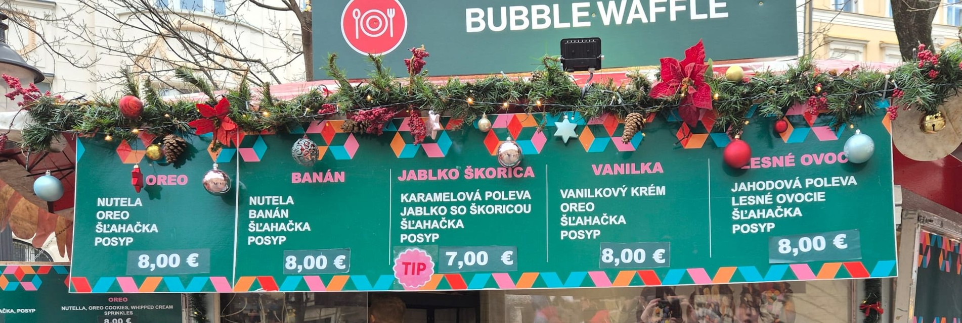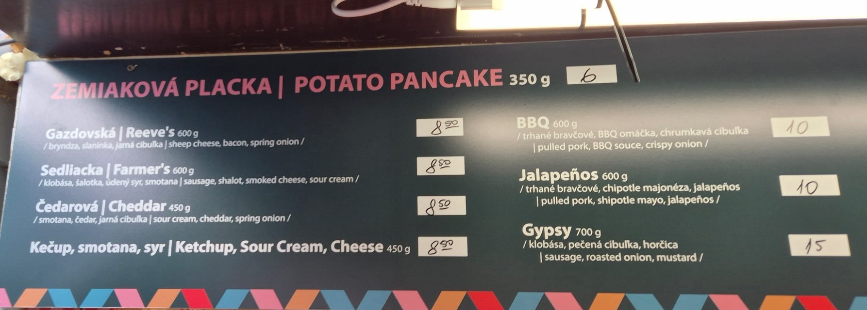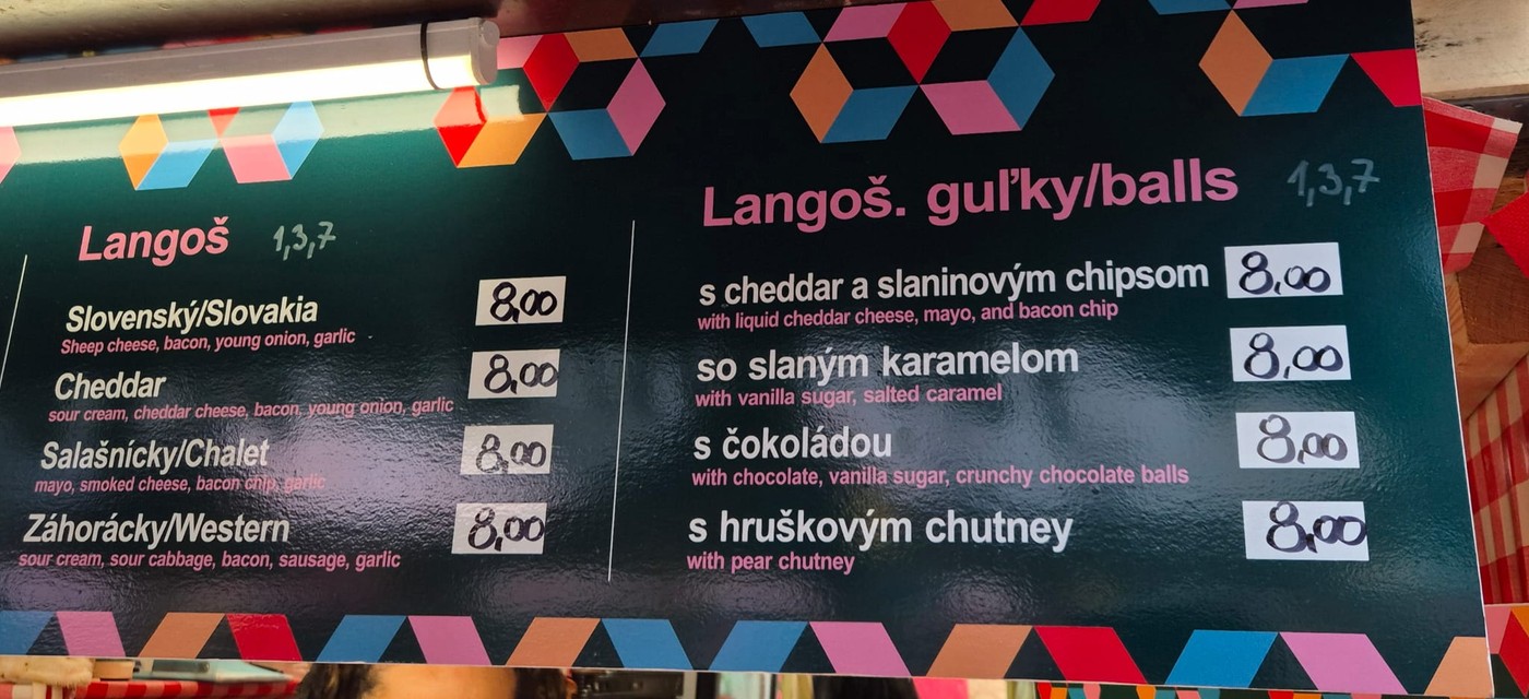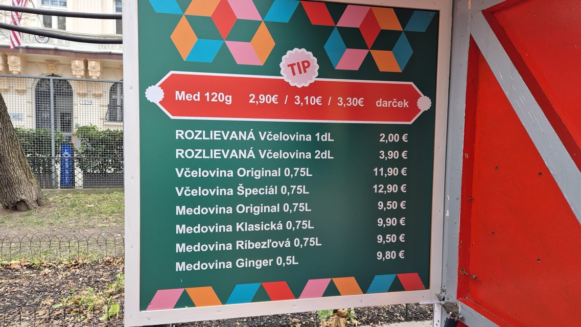 Ceny sú tu pochopiteľne prakticky rovnaké ako na Hviezdoslavovom námestí. Varené víno (2dcl) kúpite za 3,50, punč či medovinu za 4 eurá, za mastenú lokšu dáte 2,50, langoš sme videli za 5,50 (s cesnakom) aj za 8,50 eura (so syrom a kečupom). Za zemiakovú placku bez prílohy zaplatíte 6,50 eura, placka s bryndzou, slaninkou a cibuľkou stojí už 11.