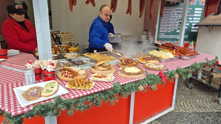 Ako každý rok nájdete v ponuke cigánsku pečienku, lokše, medovinu, varené víno či vianočný punč. Ceny v jednotlivých stánkoch sa mierne líšia, v našej fotogalérii si nájdete výber niektorých cenníkov, aby ste mali predstavu o tom, koľko za tovar na trhoch aktuálne zaplatíte. Kým v piatok večer bolo v meste plno, v sobotu počas obeda ste si mohli kúpiť prakticky všetko bez čakania.
