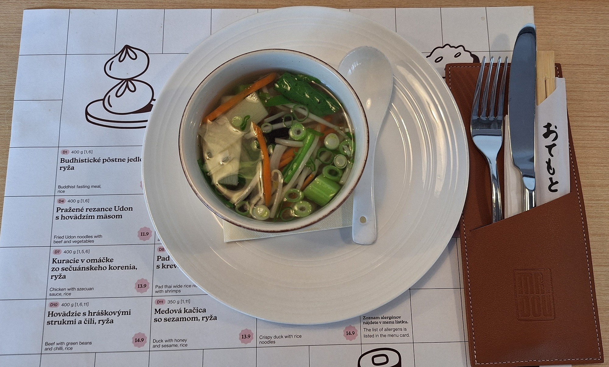 Ako prvé prekvapila veľkorysosť ponuky denného menu, až máte problém s výberom, oplatí sa však zalistovať aj v jedálnom lístku, láka na množstvo špecialít autentickej čínskej a thajskej kuchyne.