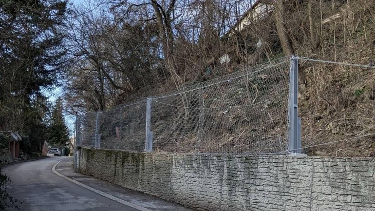 V spodnej časti svahu už pribudla na železobetónovom múre ochranná bariéra.