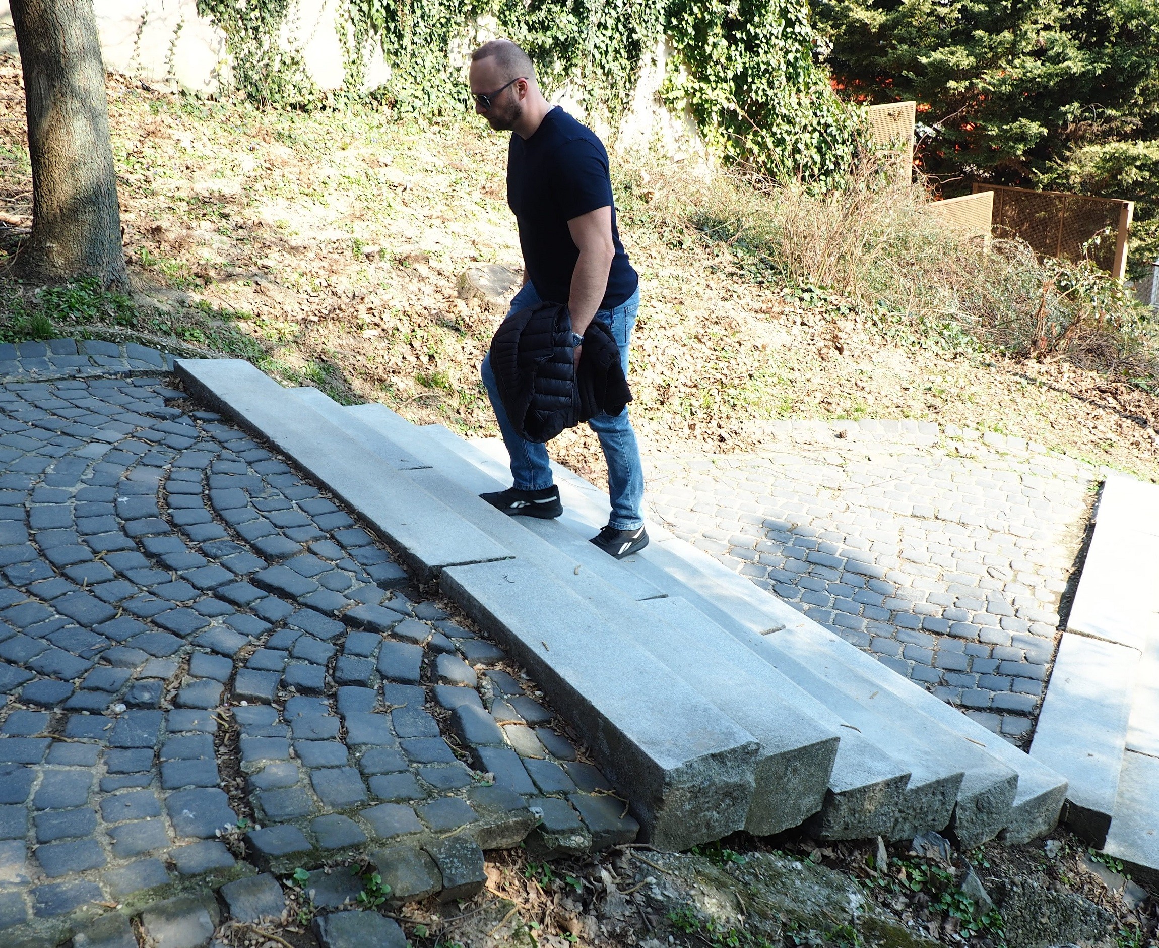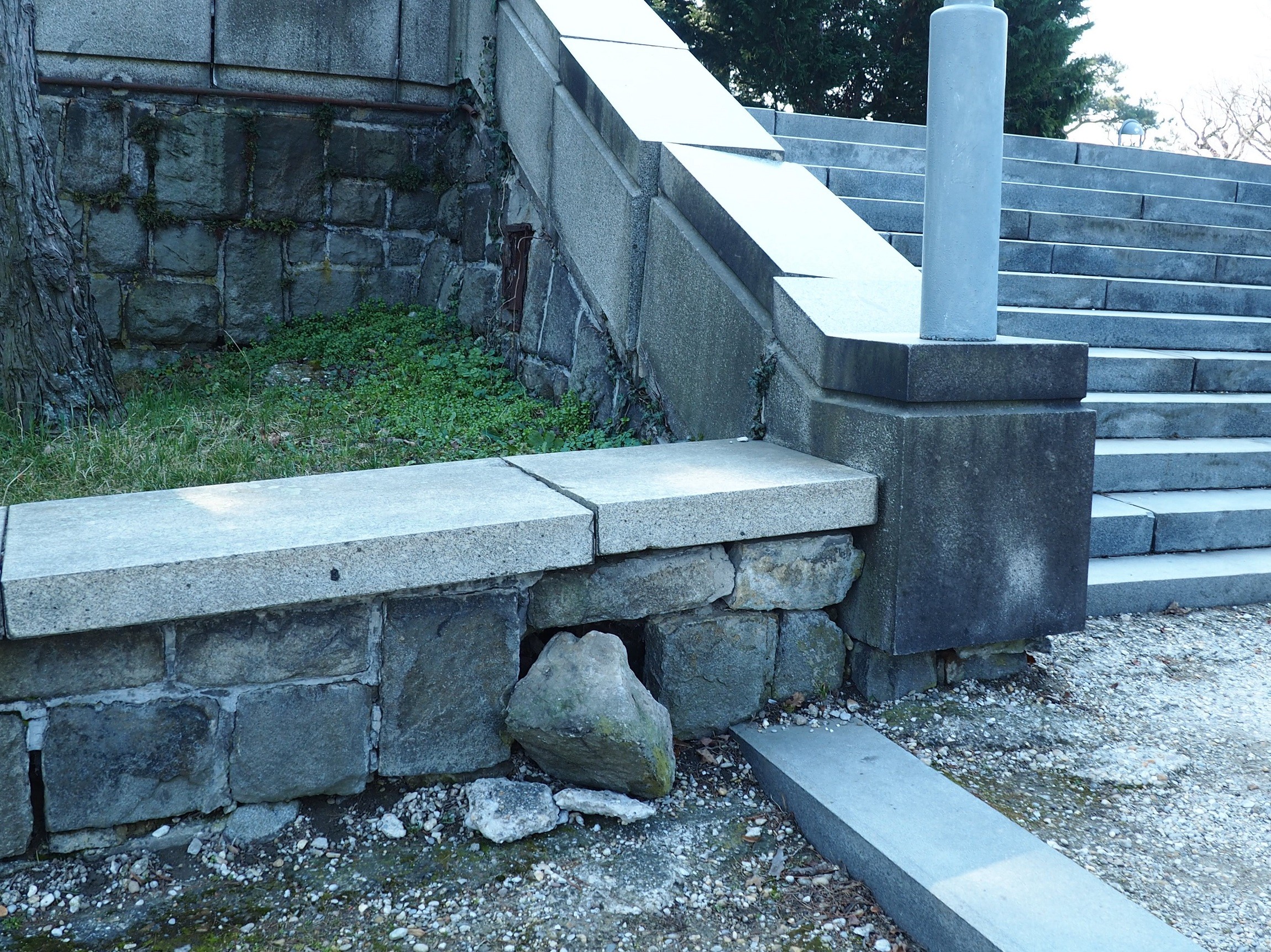 Areál bol ako vždy čistý, hrobové miesta padlých vojakov upratané. Následne sme prechádzali po celom areáli a zbadali sme niekoľko trhlín na oporných múroch, ktoré jasne dokazujú, že môže byť narušená statika nástupného areálu a mramorová dlažba je na viacerých miestach uvoľnená a niekde je dokonca prepadnutá, taktiež sa rozpadávajú prístupové schody do areálu. Z pravej strany areálu sa rozpadáva oporný múr aj schody.